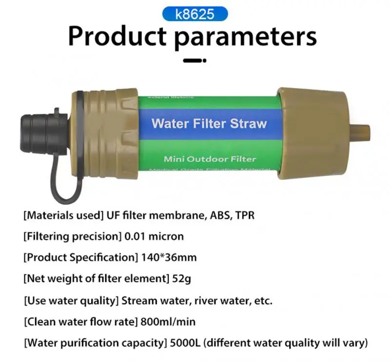 Уличный очиститель воды, соломенный портативный мини-фильтр, прямой экстренный очиститель питьевой воды для путешествий, кемпинга