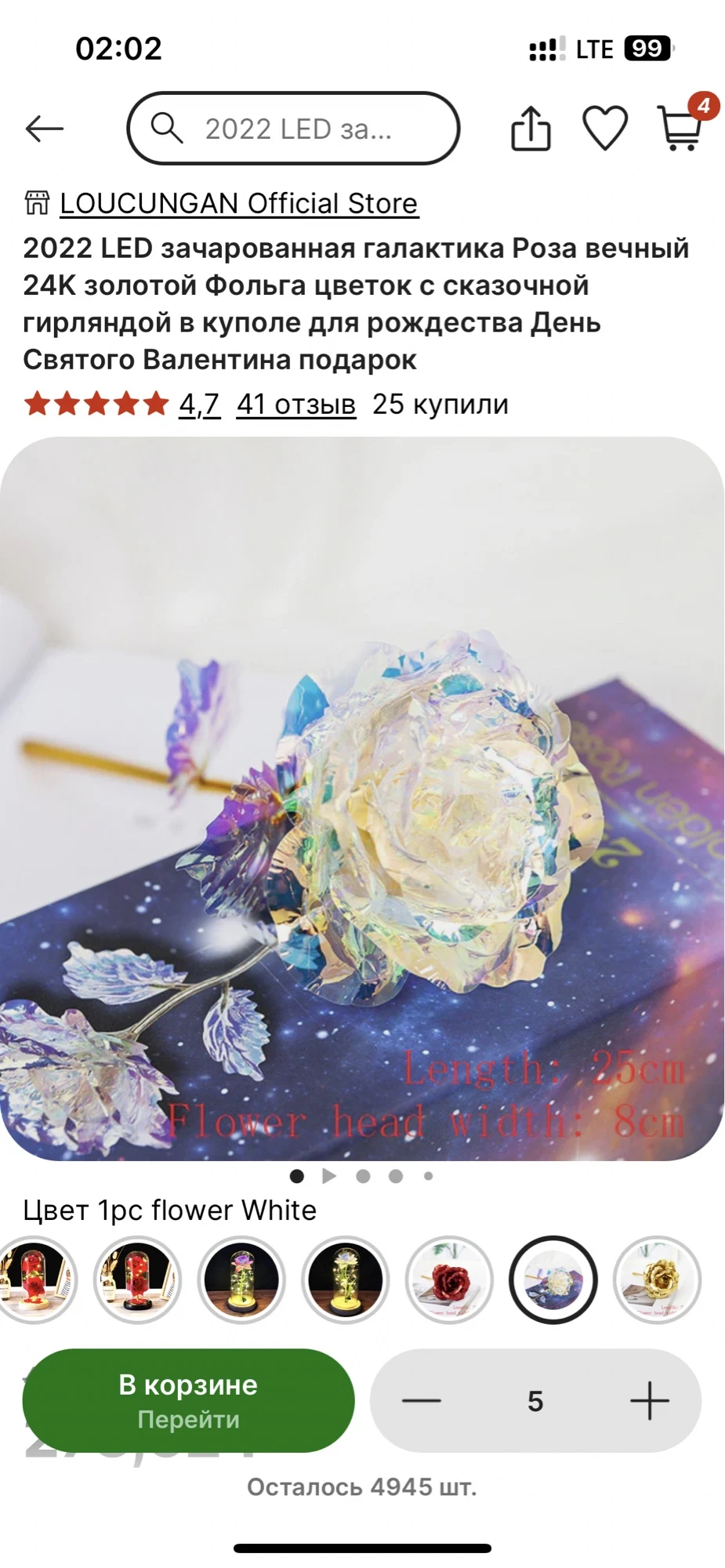 Пришло на неделю раньше. Мне очень нравится эта светодиодная Заколдованная галактика Роза вечная. Надеюсь, моей девушке понравится
