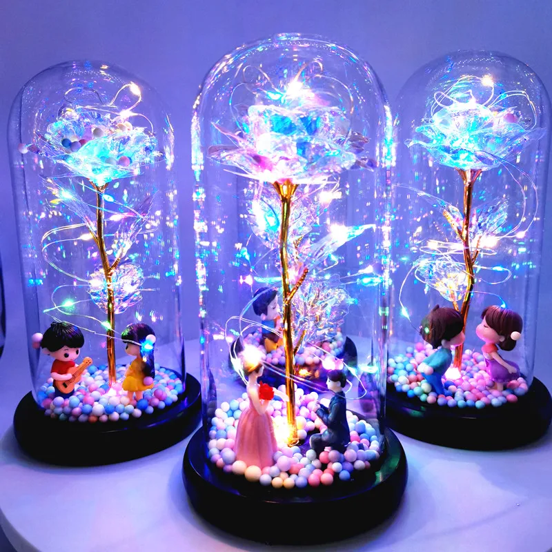 2022 LED зачарованная галактика Роза вечный 24K золотой Фольга цветок с сказочной гирляндой в куполе для рождества День Святого Валентина подарок