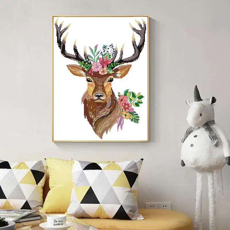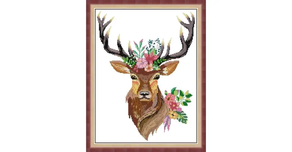 Набор для вышивки крестиком с изображением животных, цветов, головы оленя, 14 карат, 11 карат