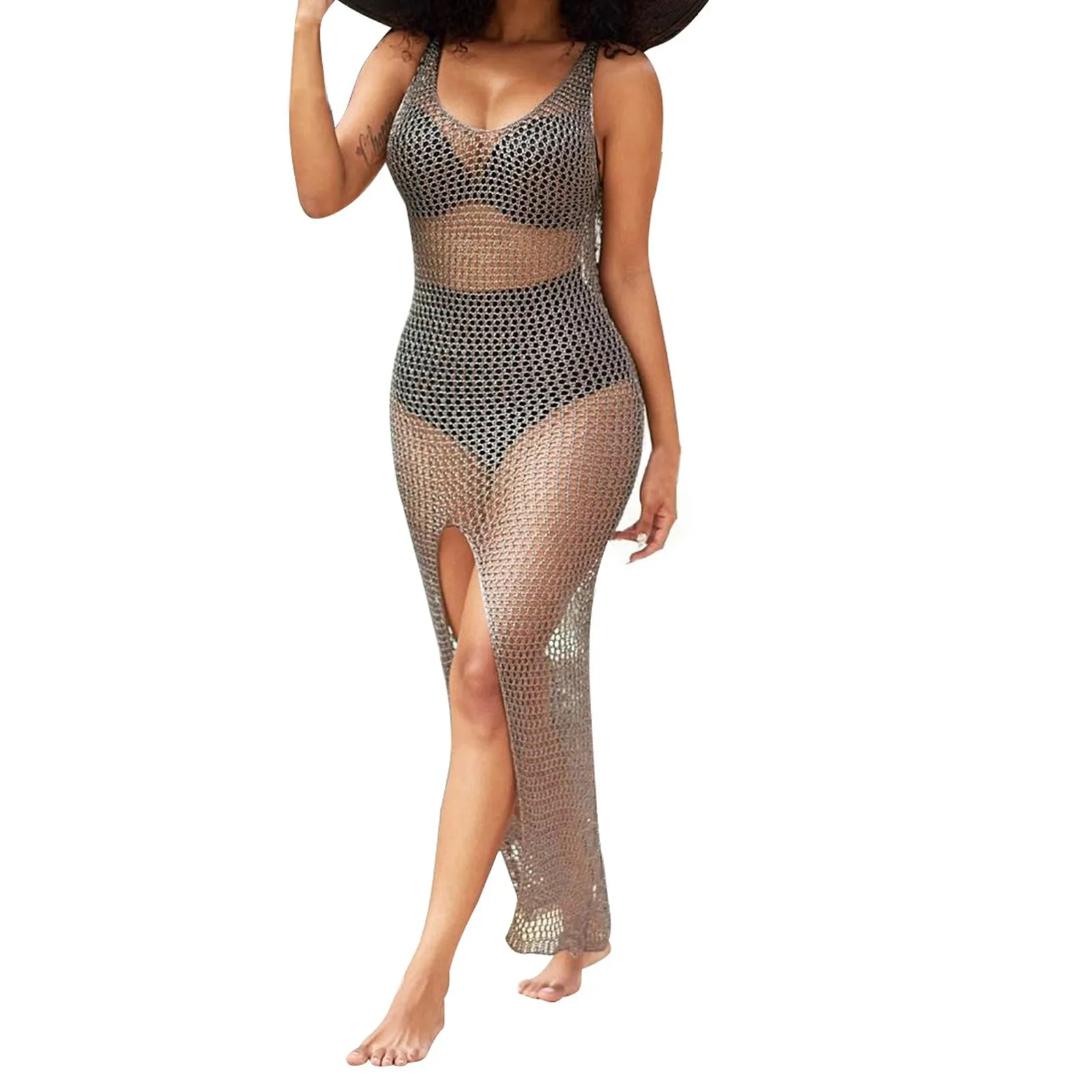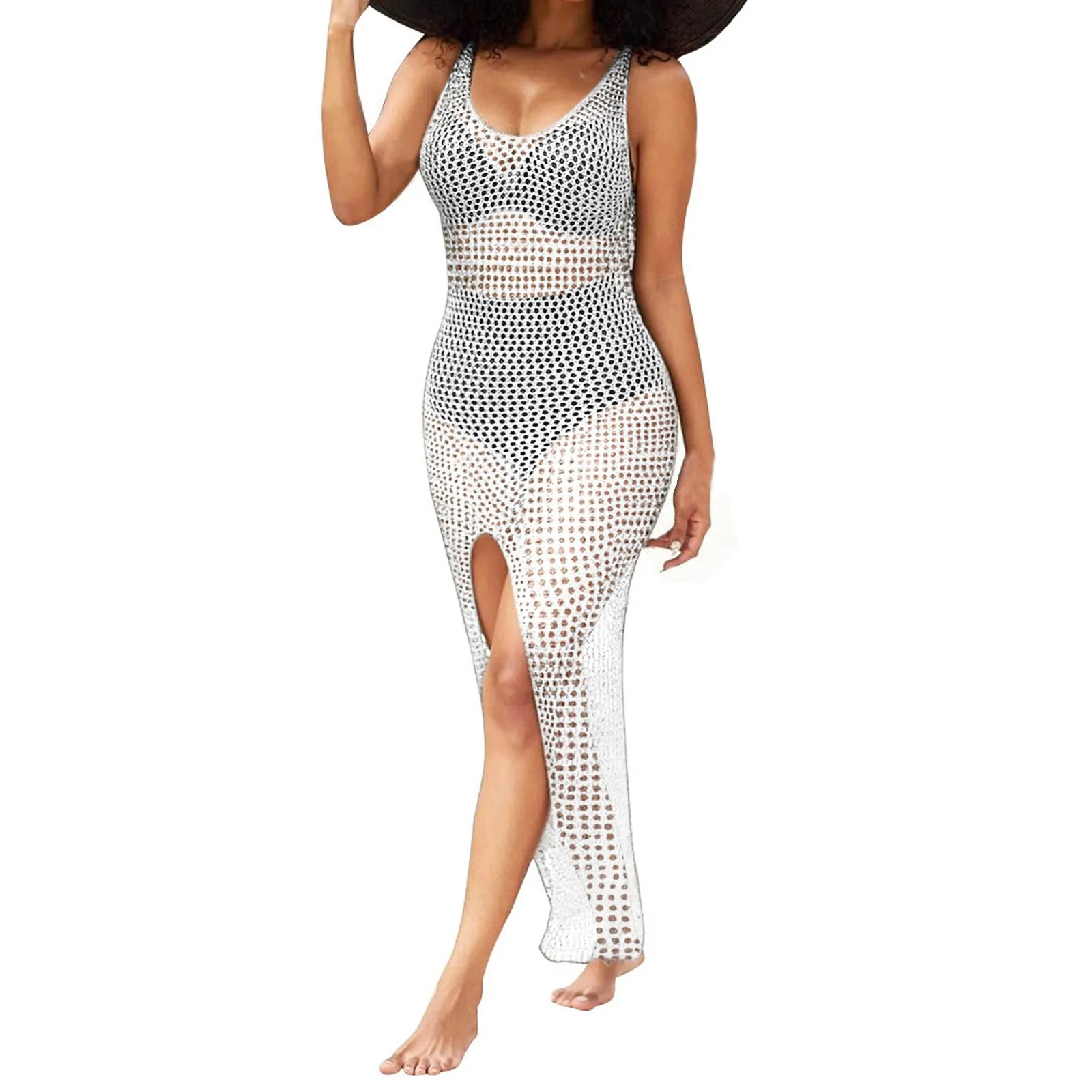 Пикантная прозрачная сетчатая вязаная туника, Пляжная накидка, накидки, длинное пляжное платье бикини, пляжная одежда, пляжная одежда, женское платье 2022