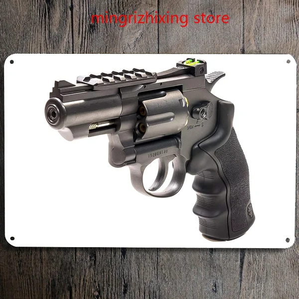Металлический жестяной плакат с револьвером, украшение для дома, на...