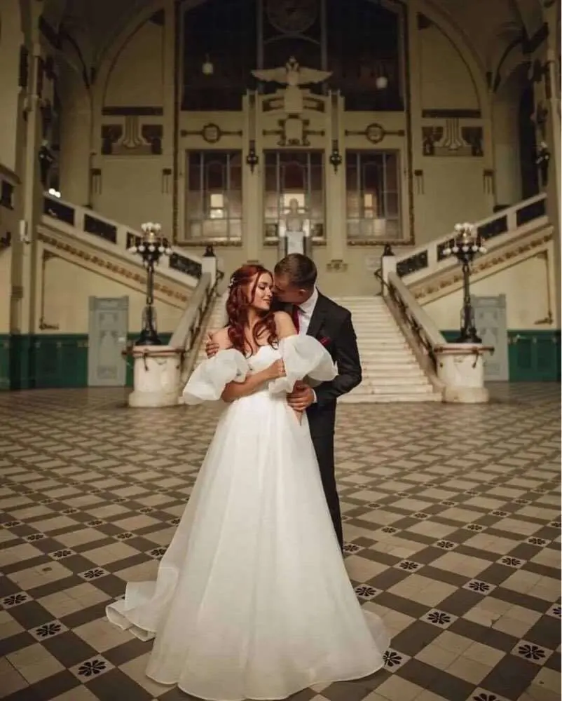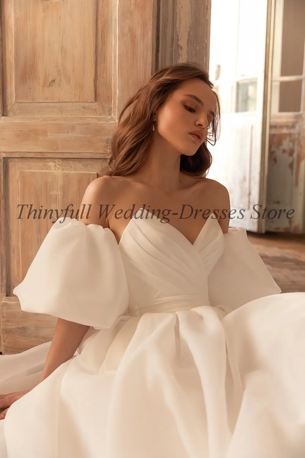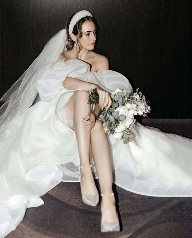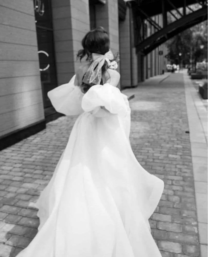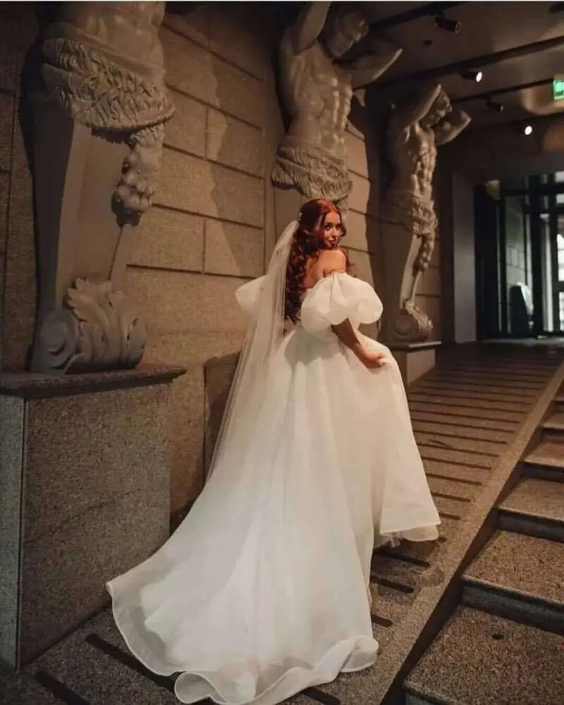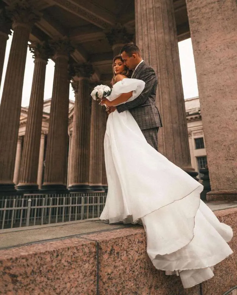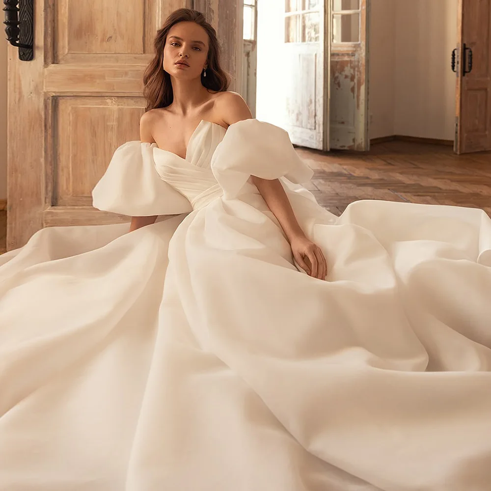 Thinyfull Свадебные платья из органзы с короткими рукавами-фонариками в стиле бохо, плиссированные пляжные платья со шлейфом для невесты, свадебные платья 2022
