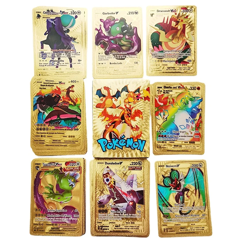 Оригинальные карты Pokemon 27-54 шт., испанские металлические золот...
