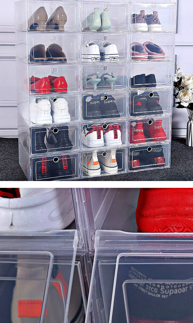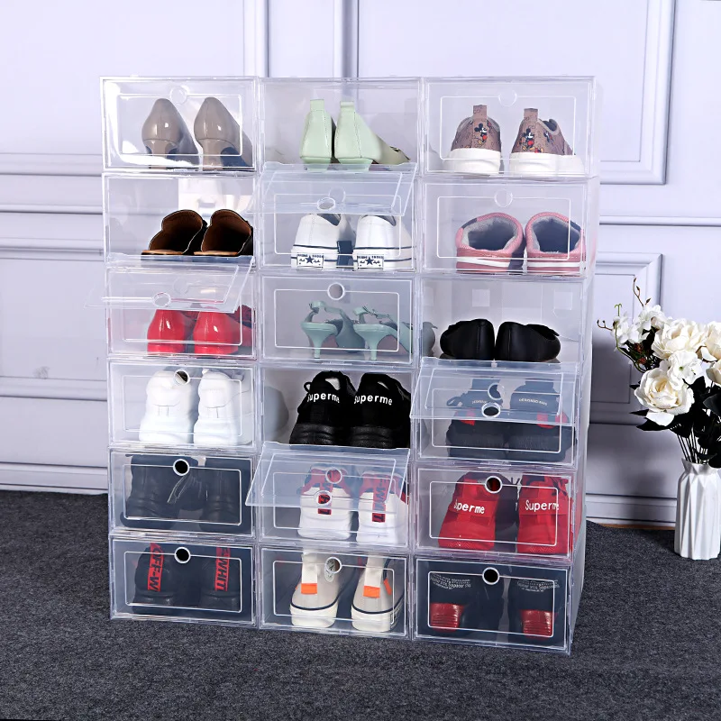 6 шт.компл. складной пластиковый чехол для обуви, утолщенный Прозрачный чехол для ящика, складная коробка, органайзер для обуви, коробка для обуви
