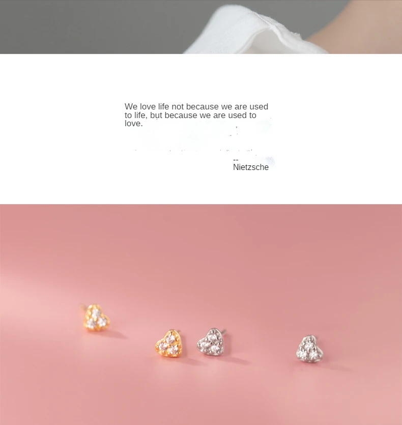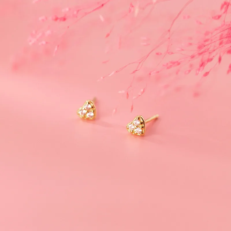 Женские серьги-гвоздики в форме сердца из серебра 925 пробы с фианитом