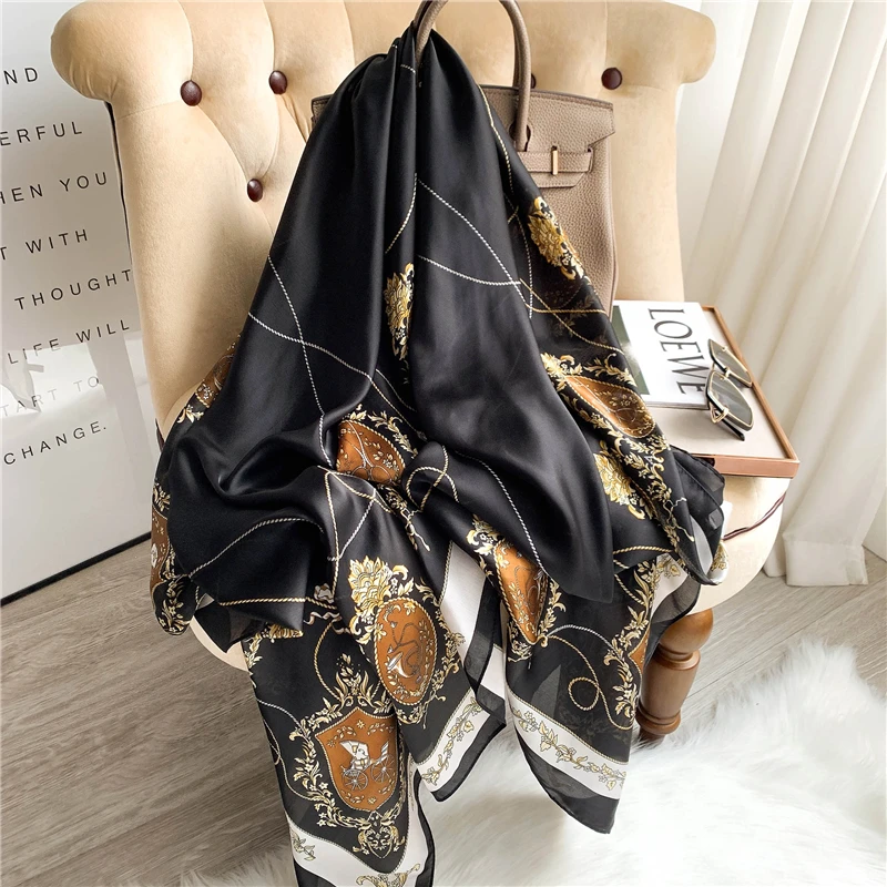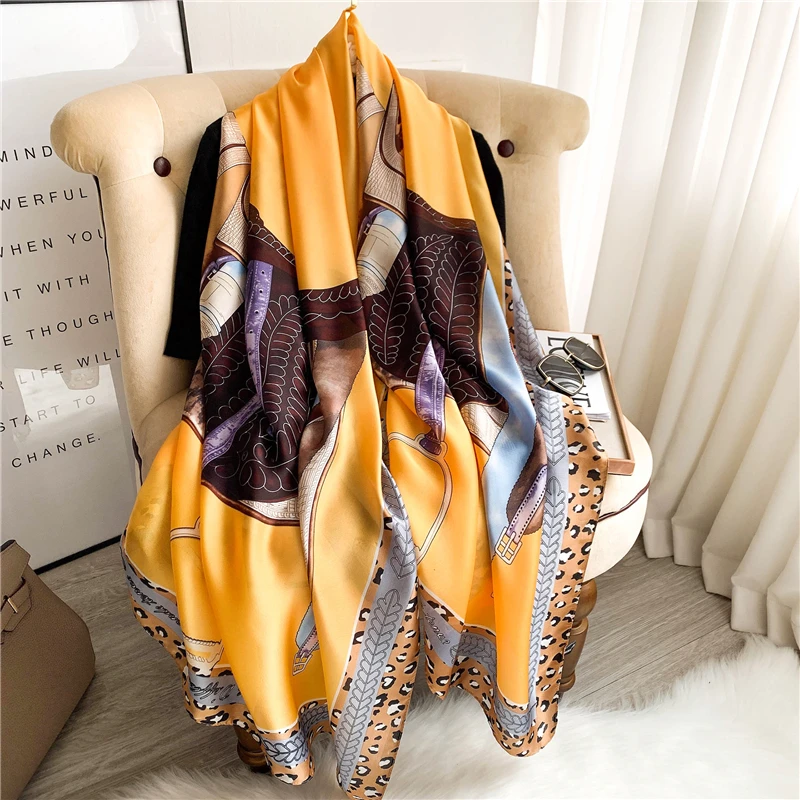 Качественные мягкие шарфы 2022 Летний Шелковый шарф женские модные женские шали фуляр Роскошная брендовая Пляжная накидка бандана