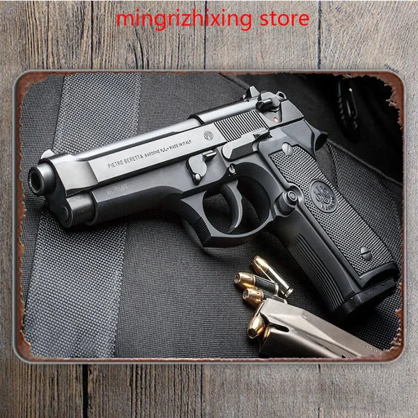 Металлический жестяной плакат с револьвером, украшение для дома, на...