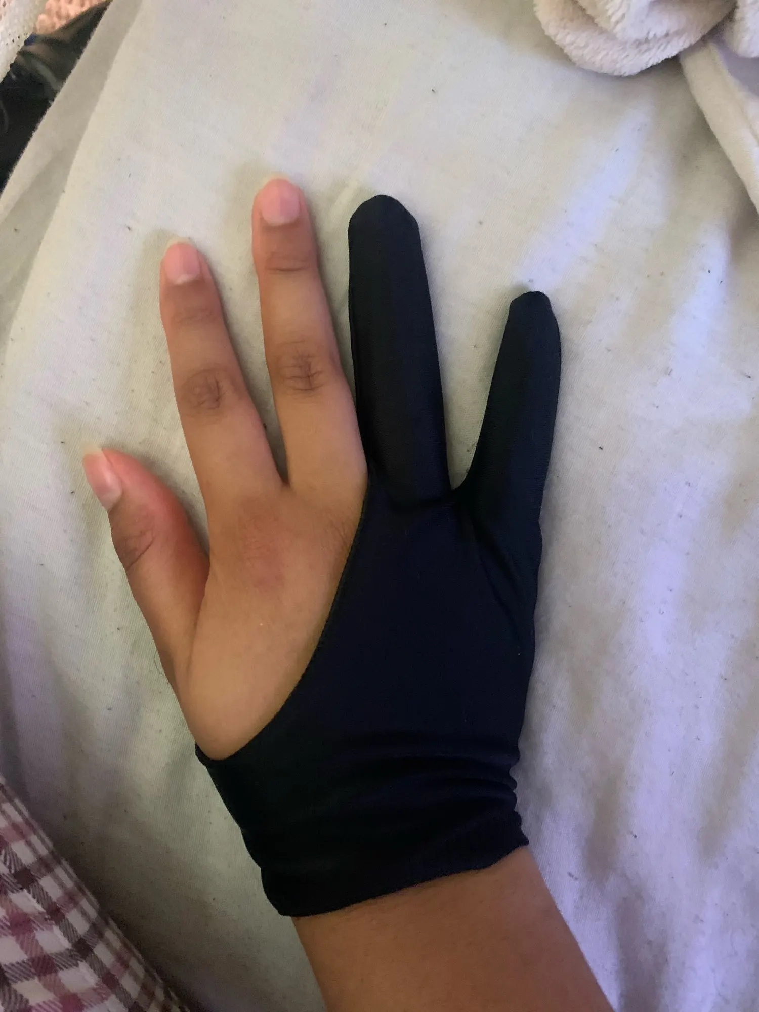 Перчатка хорошая. По размеру подошла, работать (рисовать) в ней удобно.
