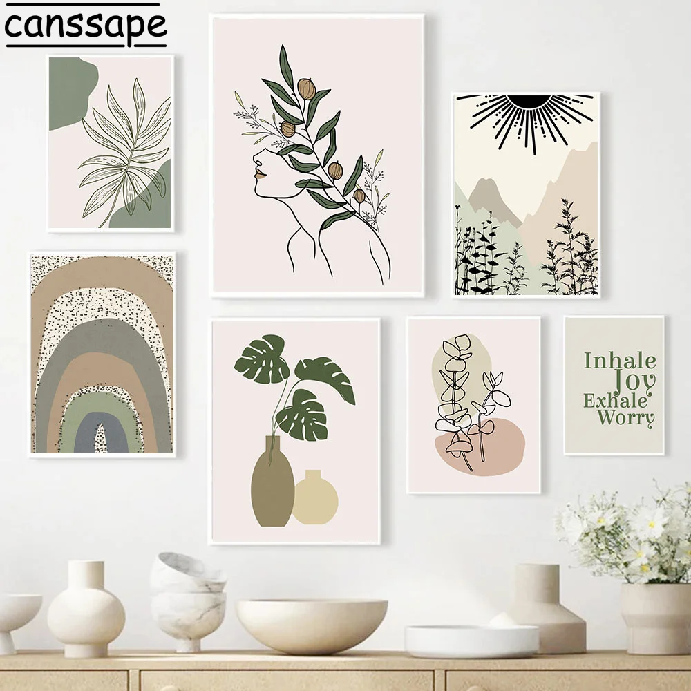 Абстрактные плакаты и принты линий, настенная живопись с растениями...