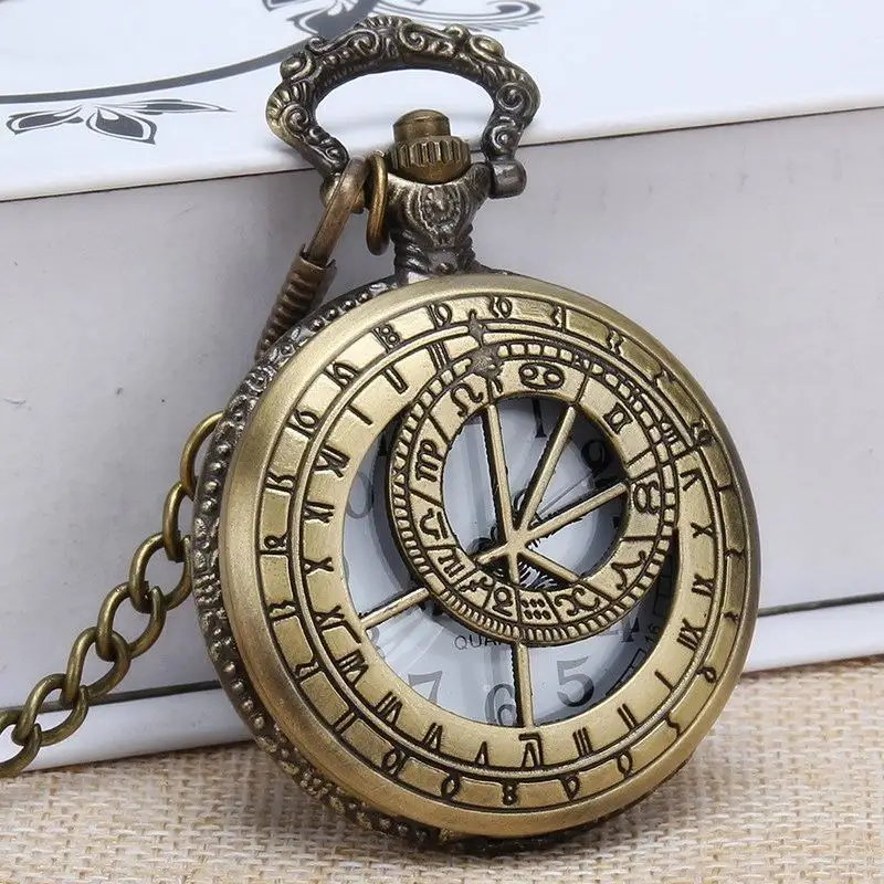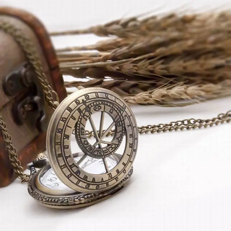 Часы на цепочке с компасом, Модные Винтажные кварцевые карманные, с подвеской в виде карты, бронзовое ожерелье, подарок