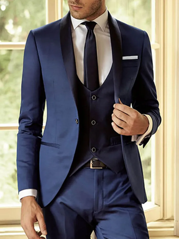 Новейший дизайн пальто и брюк, темно-синий мужской костюм, облегающий костюм из 3 предметов, смокинг с лацканами, Индивидуальные костюмы, блейзер для вечерние, мужской костюм