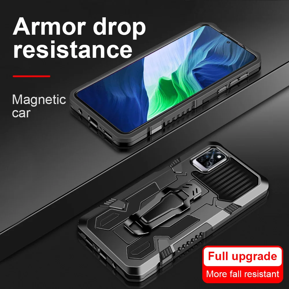 Противоударный армированный чехол для Infinix Note 10 Pro, Карманный металлический задний чехол с зажимом для Infinix 10 Play 10S 11 11S, автомобильный чехол с магнитным кольцом и подставкой