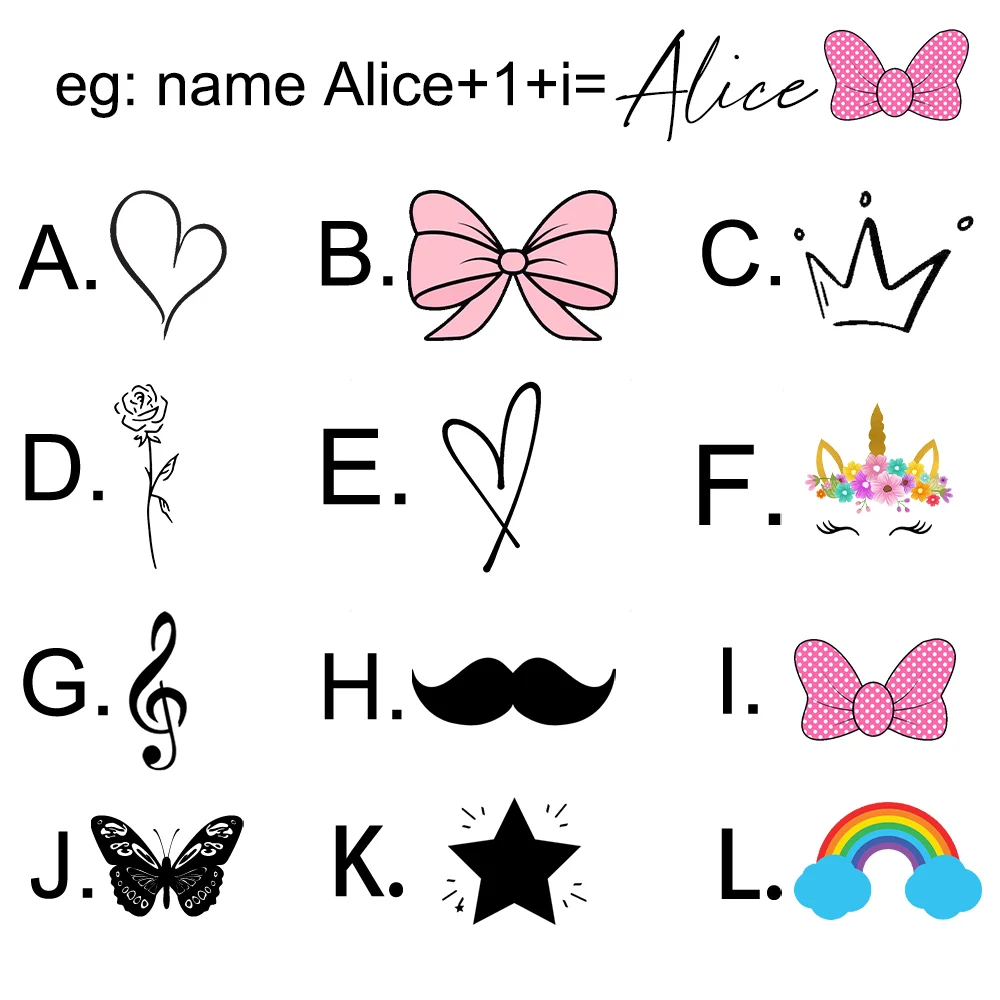 Выберите шаблон, который вы хотите добавить к имени. (Если вам не нужно добавлять узоры, вы можете оставить нам сообщение, не написав номер, представляющий шаблон)