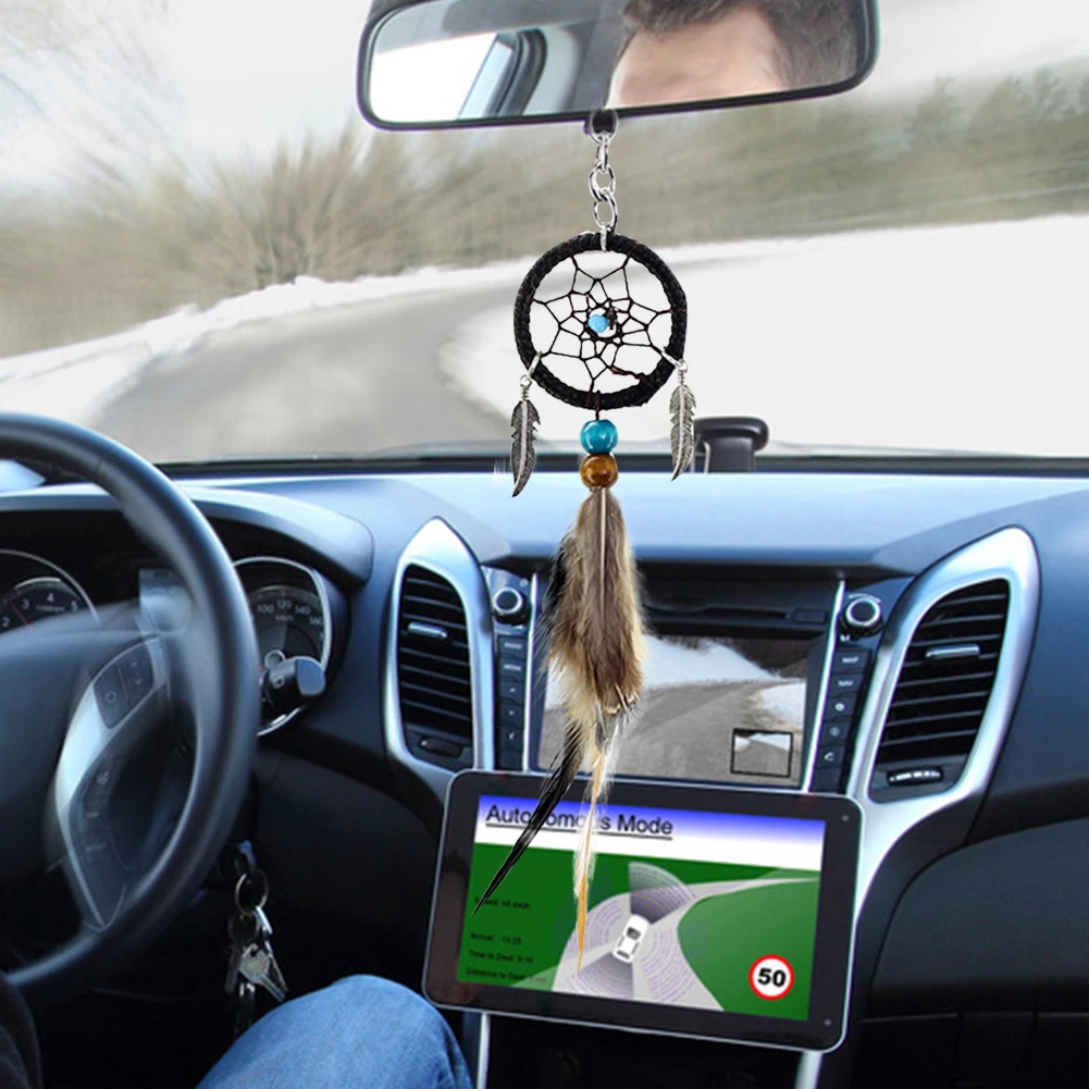 Подвеска ручной работы, ветровой колокольчик, перо, мини Ловец снов, декор для уникальных частей, портативные украшения для автомобиля