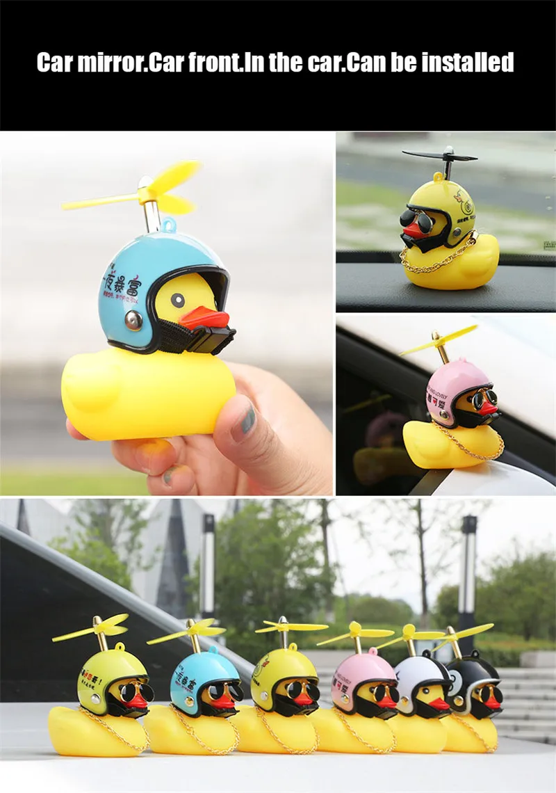 Совершенно новый и высокое качество.Модная Милая желтая утка со шлемом.С шлемом, винтом, солнцезащитными очками, металлической цепочкой для ожерелья, супер круто.С двойной боковой наклейкой и крепежным ремешком, это универсальный тип как для автомобиля, так и для велосипеда или мотоцикла.Также можно надеть детский шлем, когда они катаются на роликах, это действительно восхитительно.Характеристики: