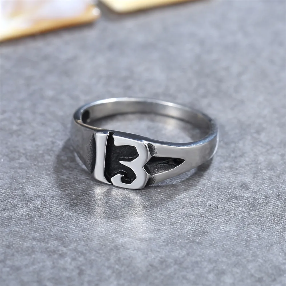 Классическое уникальное кольцо с цифрами на удачу для мужчин, модное кольцо в стиле панк из нержавеющей стали с цифрами 13, кольцо с алфавитом для женщин, амулет, ювелирные изделия, подарок