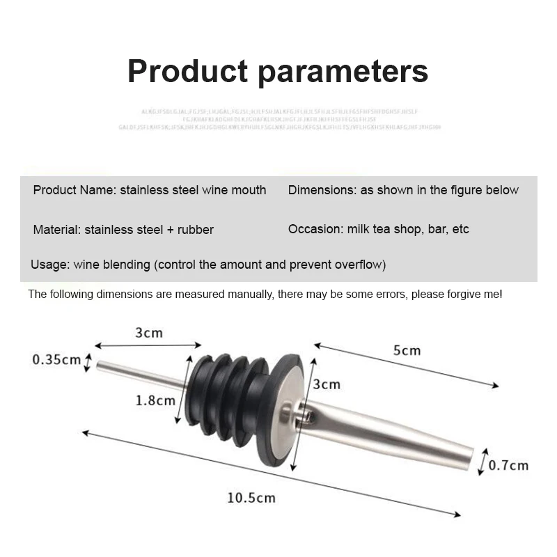 Введение: винное отверстие изготовлено из нержавеющей стали. Это действительно редкий хороший продукт с хорошим качеством и низкой ценой. Этот продукт имеет простой дизайн и широкое применение. Пробка для бутылки изготовлена из пищевого пластика. Соединительная часть рта бутылки оснащена воздушной направляющей, которая имеет хороший эффект герметизации и более плавный сброс.