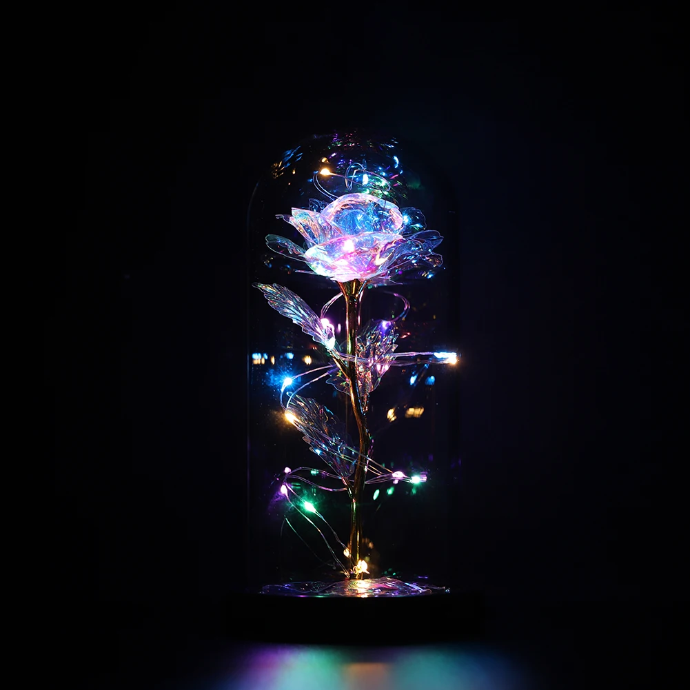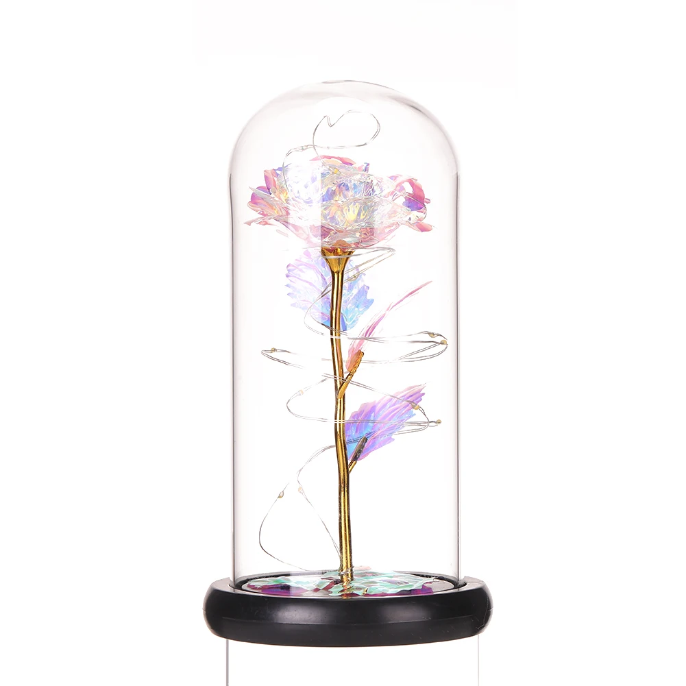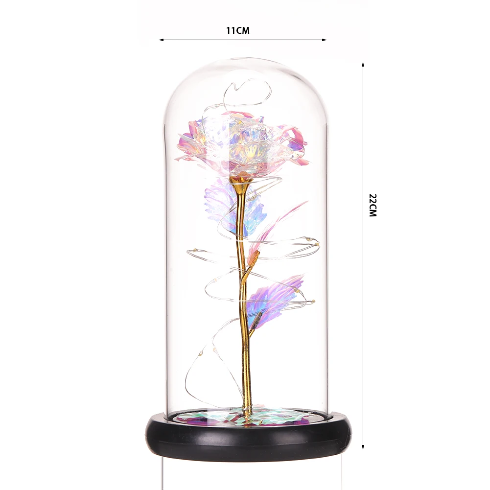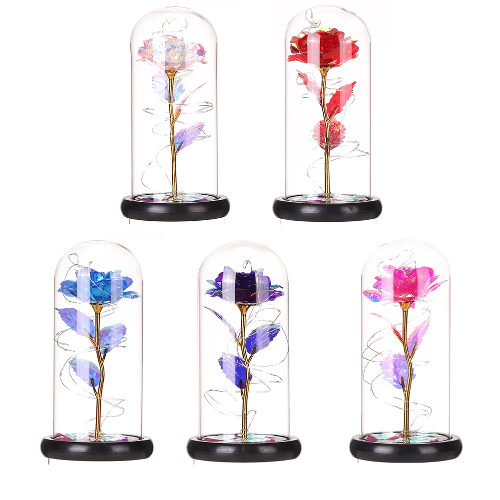 Вечная роза, цветок, светодиодная вечная роза в стеклянном интерьере, декор для Дня Святого Валентина, свадебные подарки на новый год