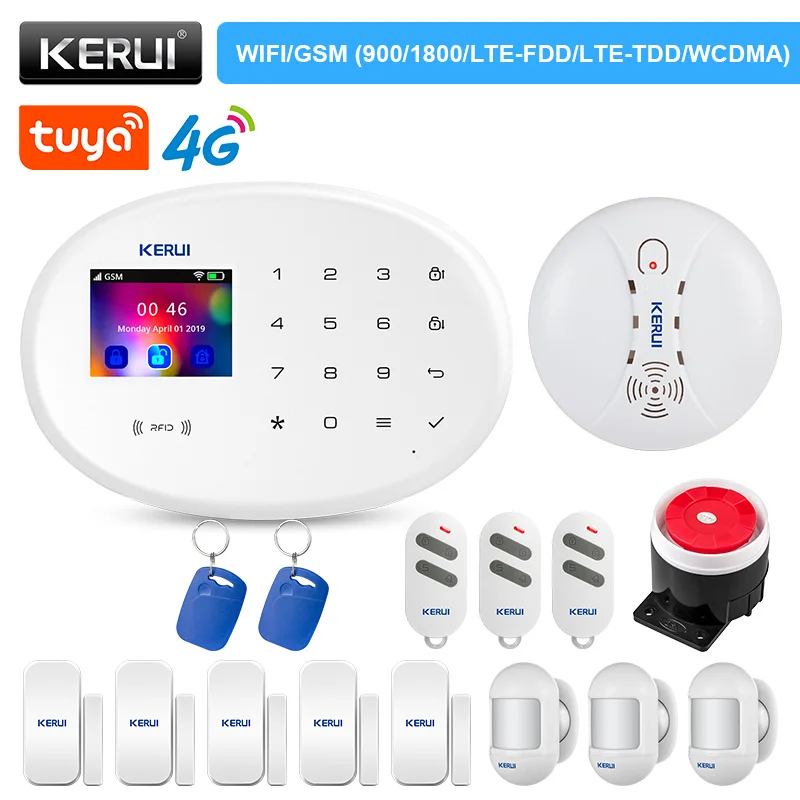 Комплект охранной системы KERUI W20 4G WIFI GSM домашняя безопасность Tuya умный дом поддержка Alexa Google домашняя защита PIR датчик движения