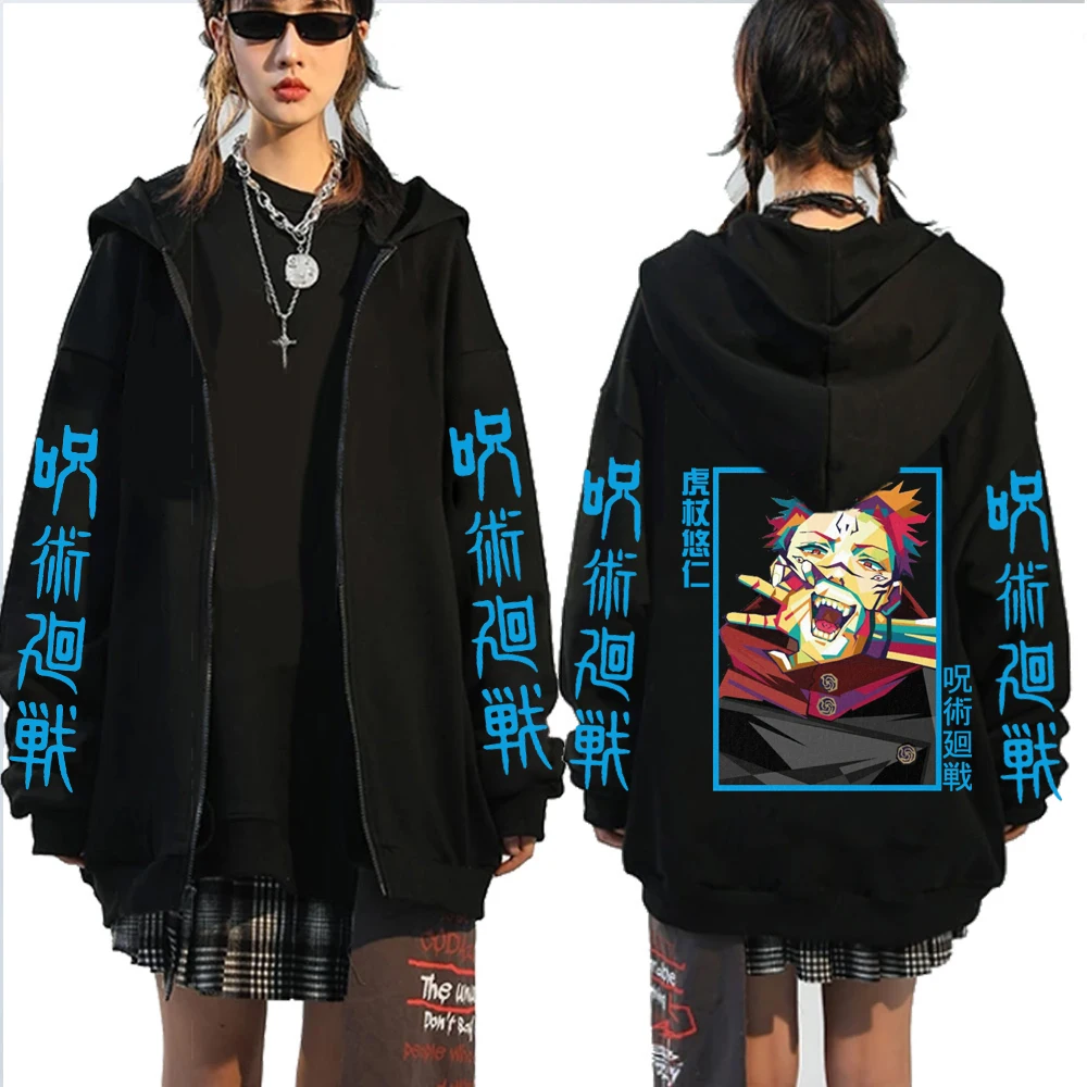 Новинка Аниме юютсу Kaisen Gojo Satoru толстовка с капюшоном на молнии толстовки свитшоты Itadori Yuji графические Мультяшные куртки на молнии пальто