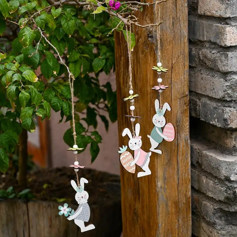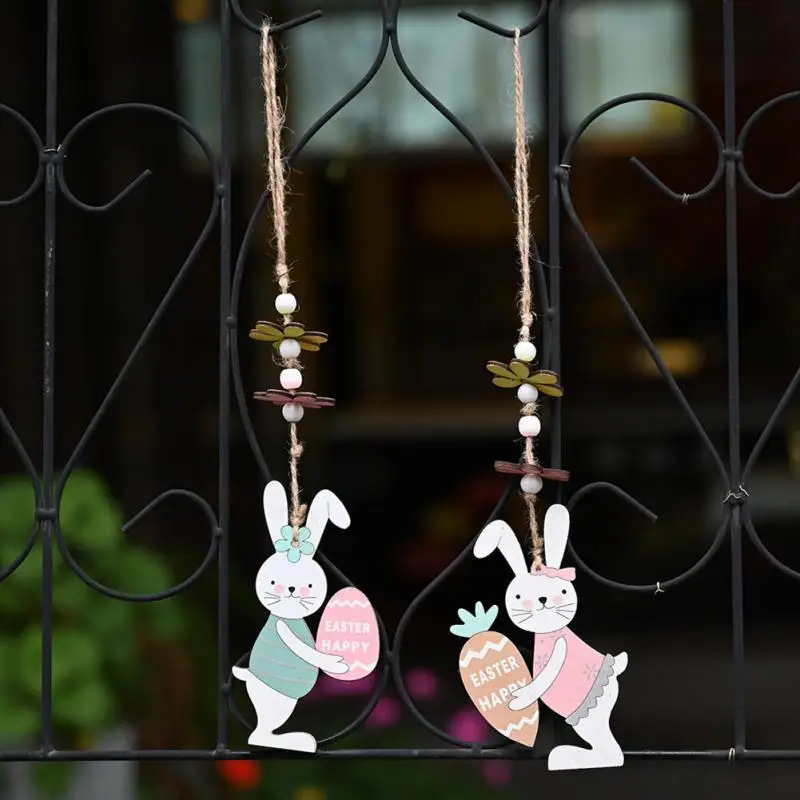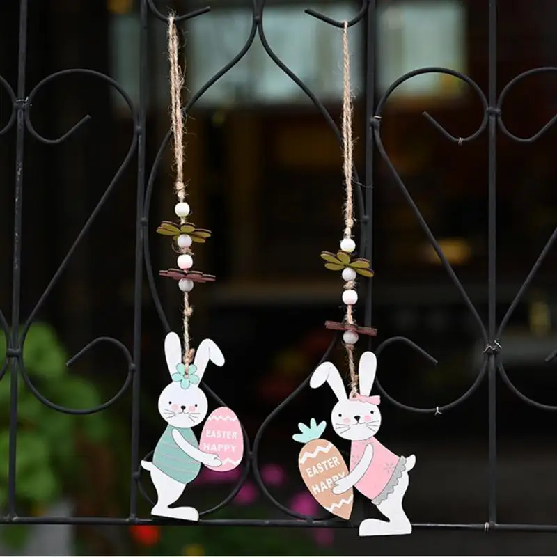 Пасхальные украшения, деревянная искусственная деревянная подвеска в виде яйца, Длинная подвеска в виде кролика, редиса, праздничная атмосфера