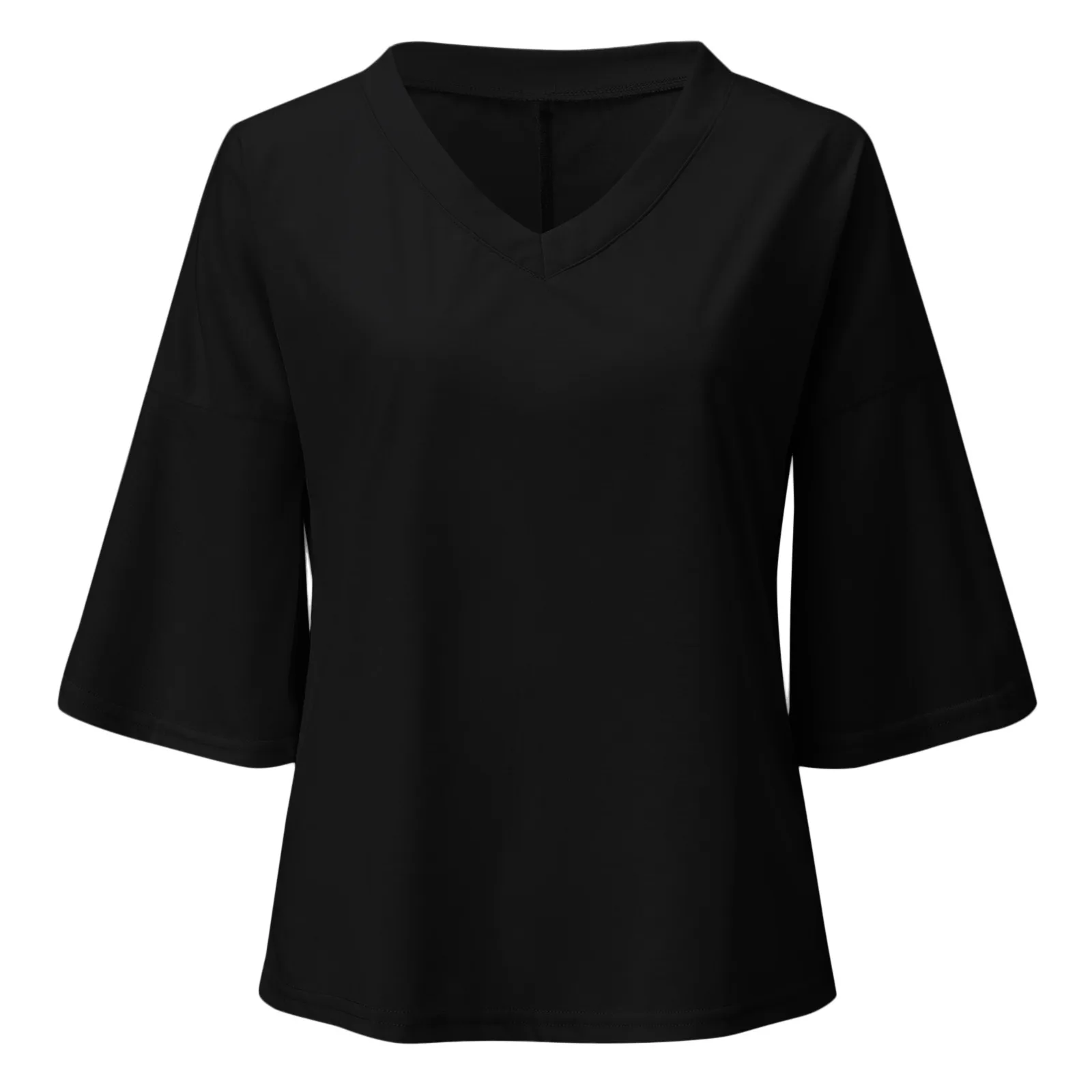 2022 Женская Повседневная однотонная Трикотажная футболка с v-образным вырезом и рукавами-фонариками, топ, блузка