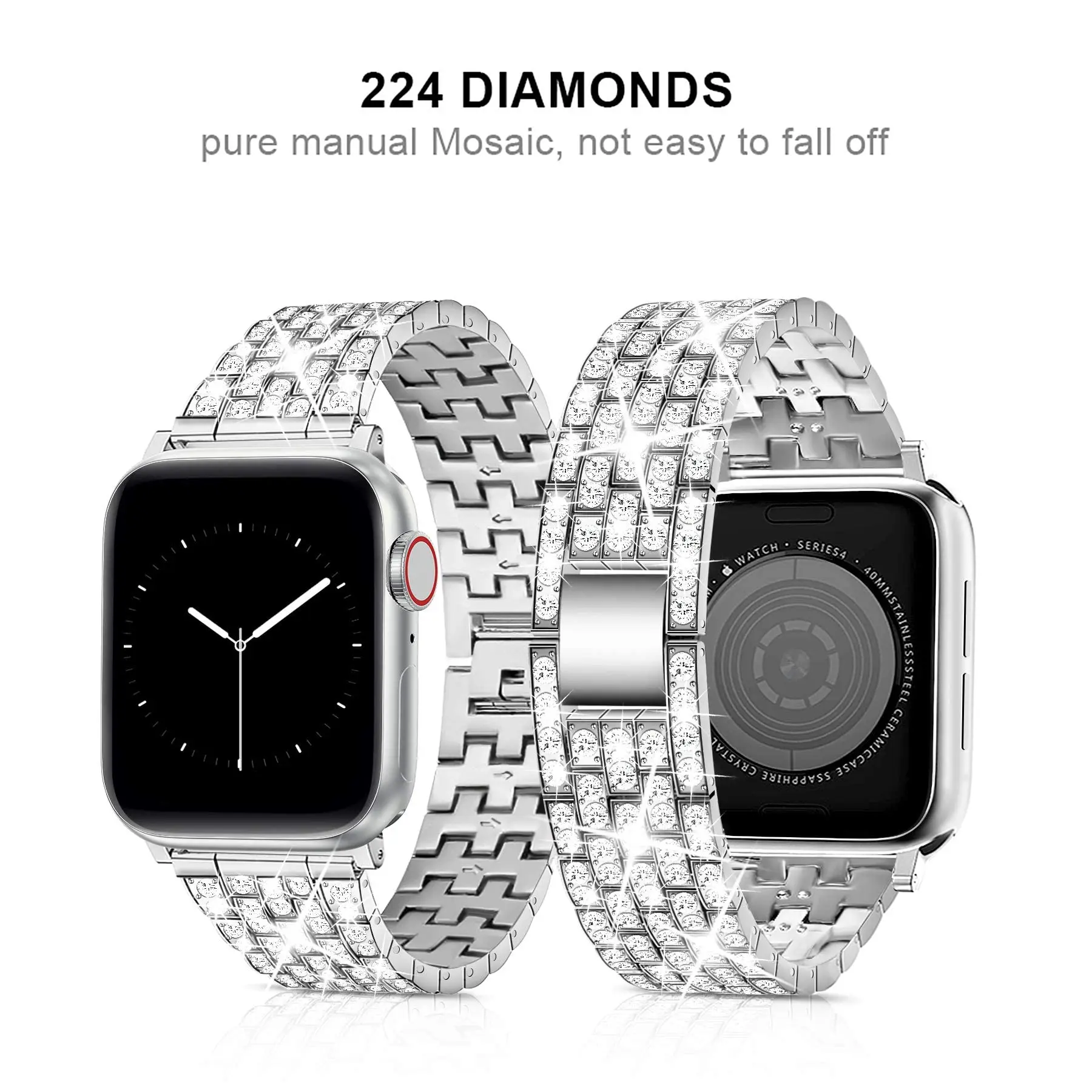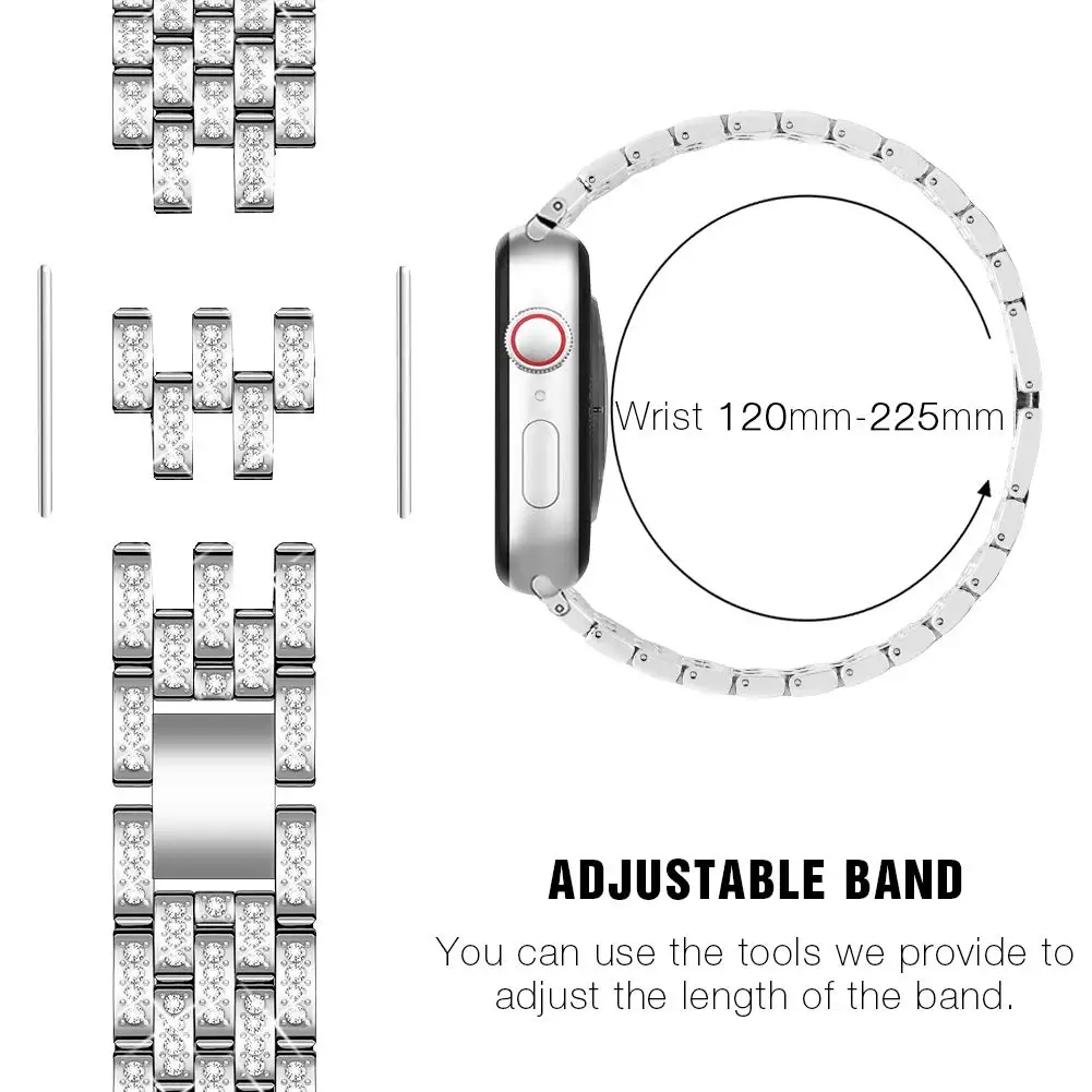 Совместимые модели: специально разработанные для Apple Watch серии 7,6, 5, 4,SE. Пожалуйста, не забудьте проверить обратную сторону ваших часов и убедитесь, что вы заказываете правильный размер. Подходит для 5,1 "-9,2" (130 - 235 мм) запястье.Яркий дизайн и переливчатый Серия: набор с блестящие стразы; Подарите вашему apple watch новым взглядом и делает ее более женственной. Легко получить комплименты по бизнесу, свиданиям, вечерние и любым другим случаям.Премиум Материал: Этот шкатулка для украшений набор с сверкающие стразы выполнен из нержавеющей стали, которая является безопасным при контакте с кожей и комфортно. И в сочетании с украшениями часы Чехол изготовлены из высококачественного поликарбоната, отсутствие деформации и обесцвечиванию, также в комплекте с сверкающие стразы.Простая настройка: это ювелирные изделия браслет поставляется с средство для изменения размера для снятия как можно больше ссылки, как вам нравится в соответствии с вашего запястья.Что вы получаете: 1 x Bing apple watch band.