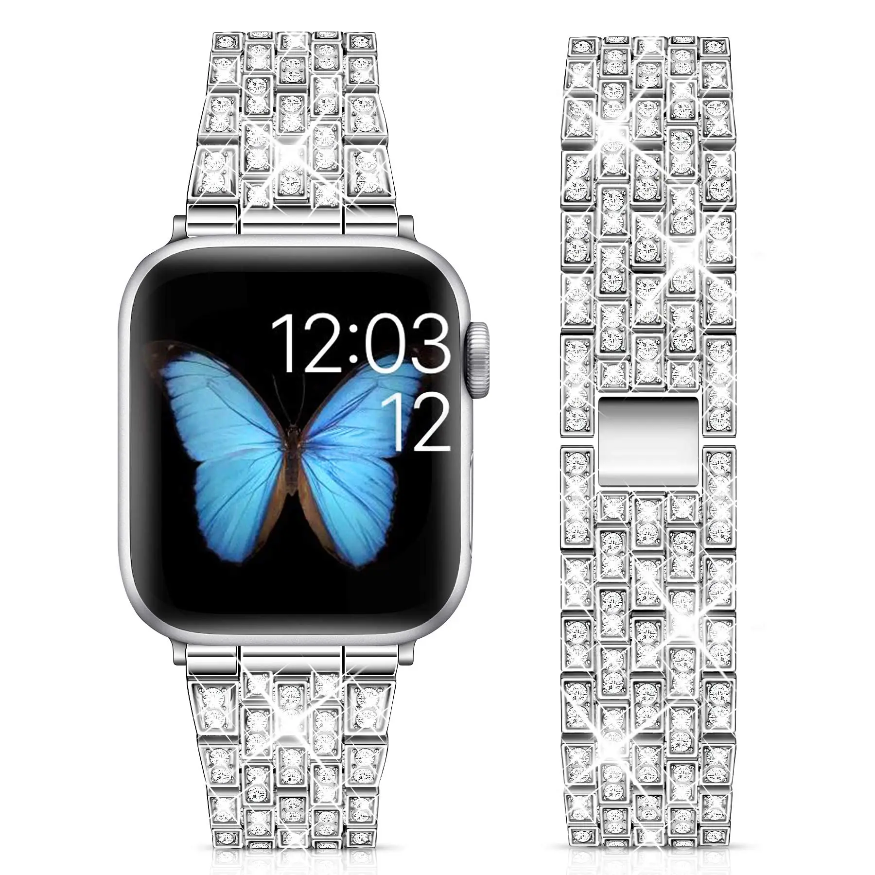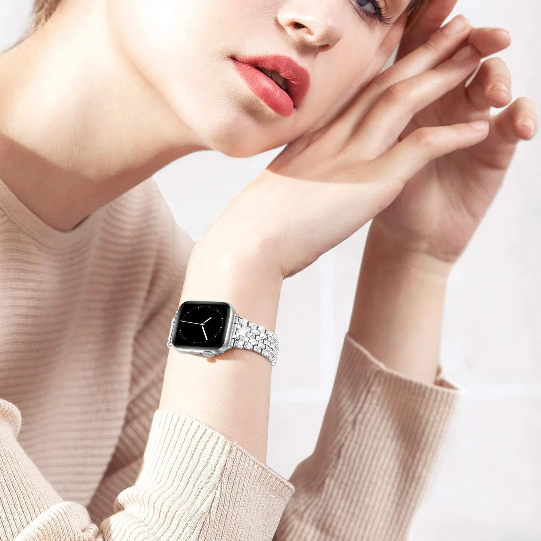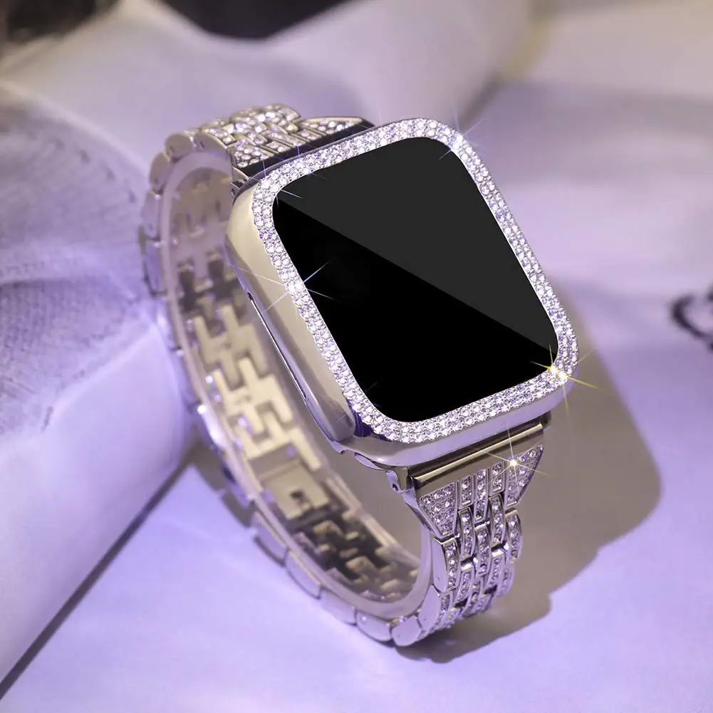 Тонкий алмазный ремешок для Apple watch, металлический браслет для iWatch Series 3 4 5 6 se 7, 40 мм 41 мм 38 мм 45 мм 44 мм 42 мм 38 мм