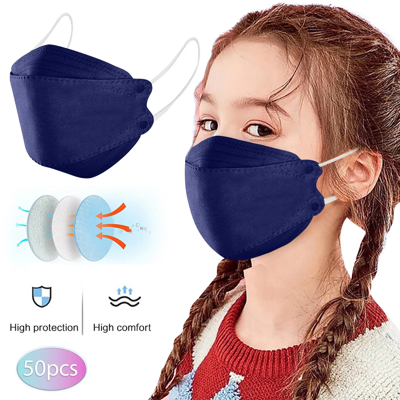 50 шт одноразовыеСертифицированный Уход за кожей лица-маска для детей, 4 слоя нетканый защитный 3D Fish_typeПокрытие лица, дышащая и удобная
