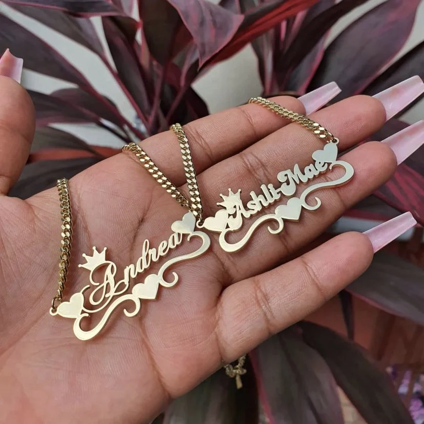 Модное ожерелье с именем на заказ для женщин, ожерелье с кулоном в виде сердца и короны, кубинская цепь из нержавеющей стали, ювелирные изделия в подарок
