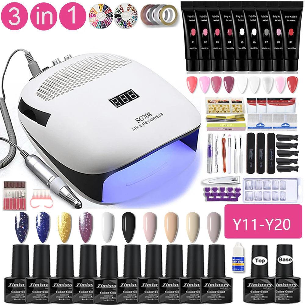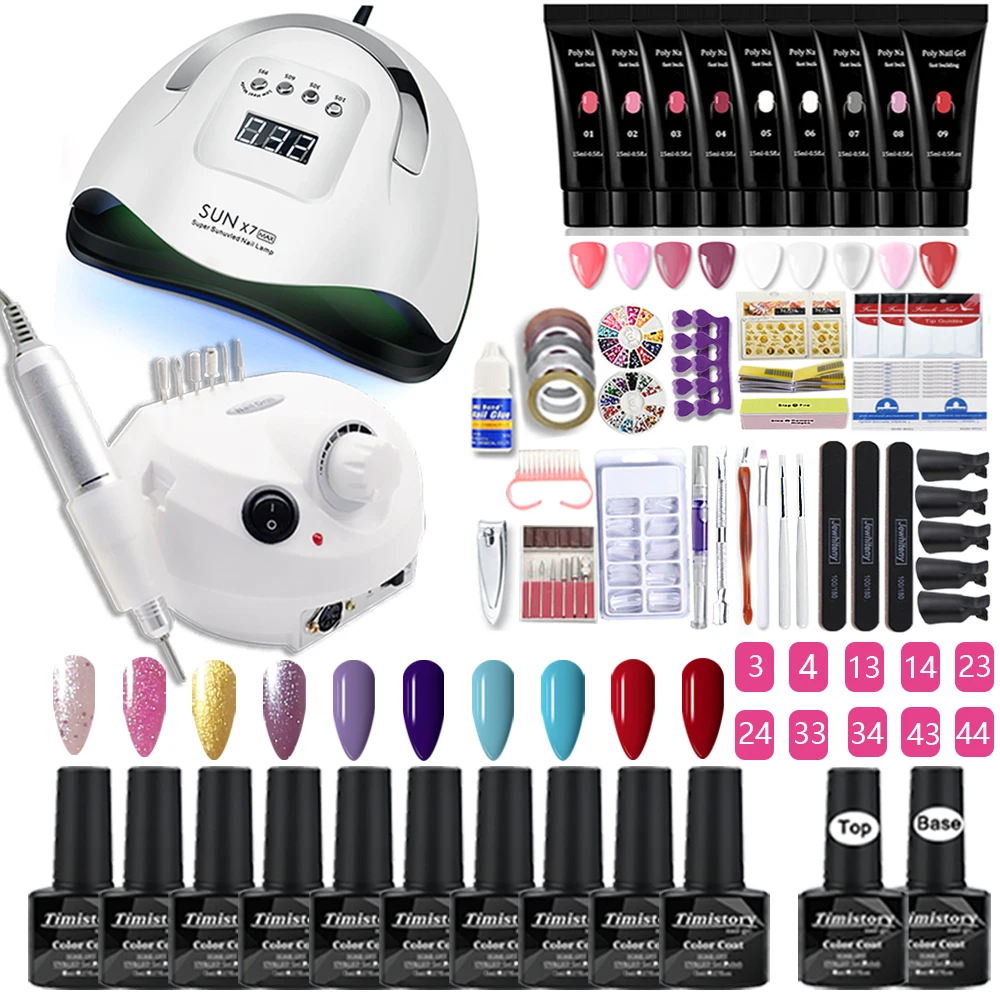 Маникюрный набор с полнофункциональной 140W маникюрной машиной 10 цветов лак для ногтей с BT 9 цветов поли гель для ногтей полный набор инструментов для ногтей