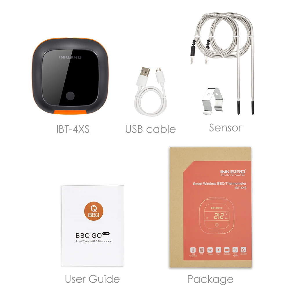 INKBIRD IBT-4XS, цифровой термометр для барбекю, мяса, мгновенное считывание, измерение температуры, кухонные гаджеты с 2/4 пищевыми зондами, вечерниеПечь для курения пивоварения гриль бесплатное приложение
