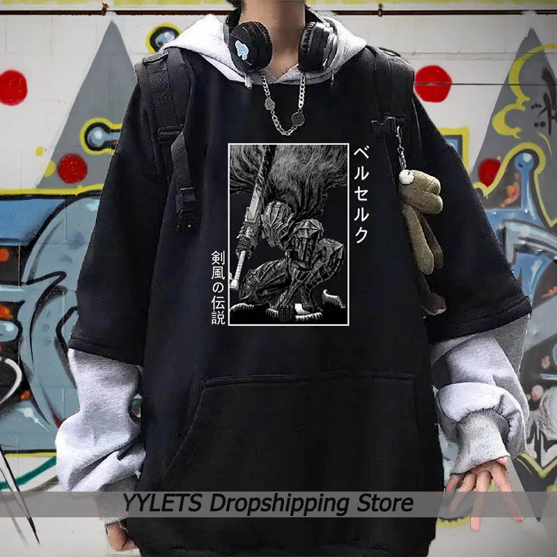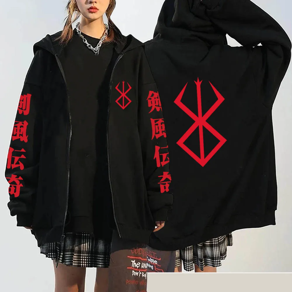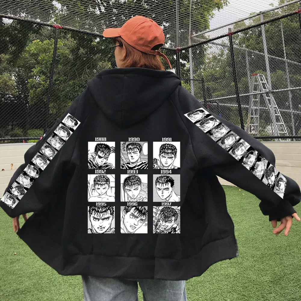 Осенне-зимнее пальто на молнии с капюшоном модная Толстовка Harajuku Berserk Cool Loog Sleeve Мужская и женская одежда Harajuku Puck