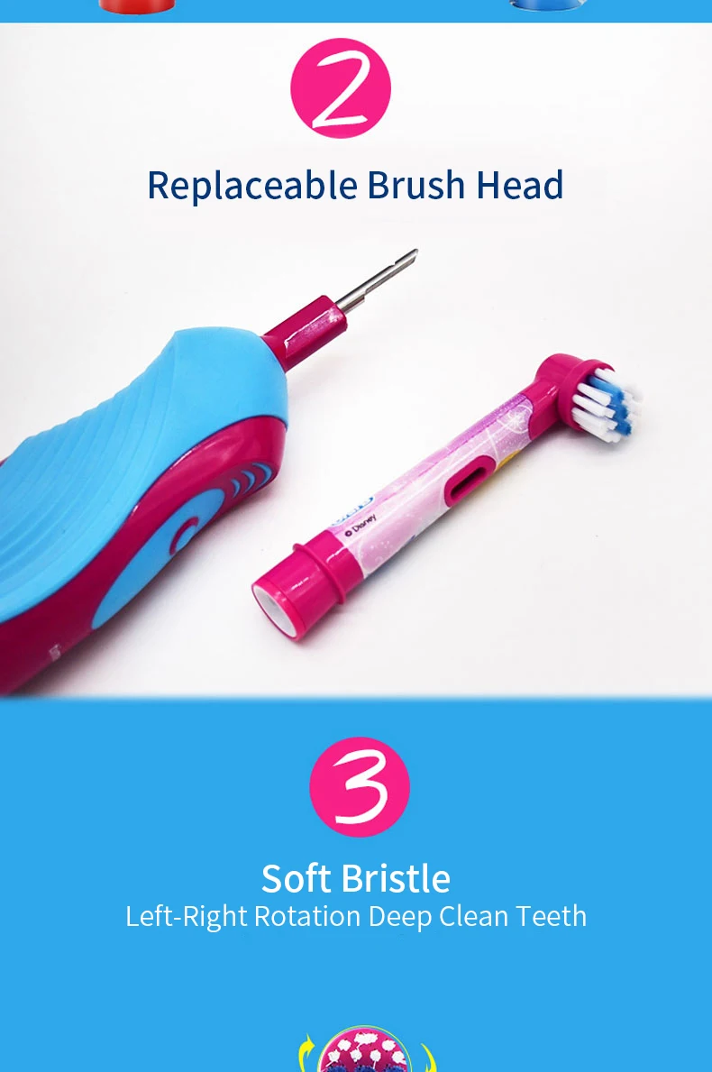 Дизайн для ребенка: вращение влево-вправо, управление кнопками, Сменная головка щетки