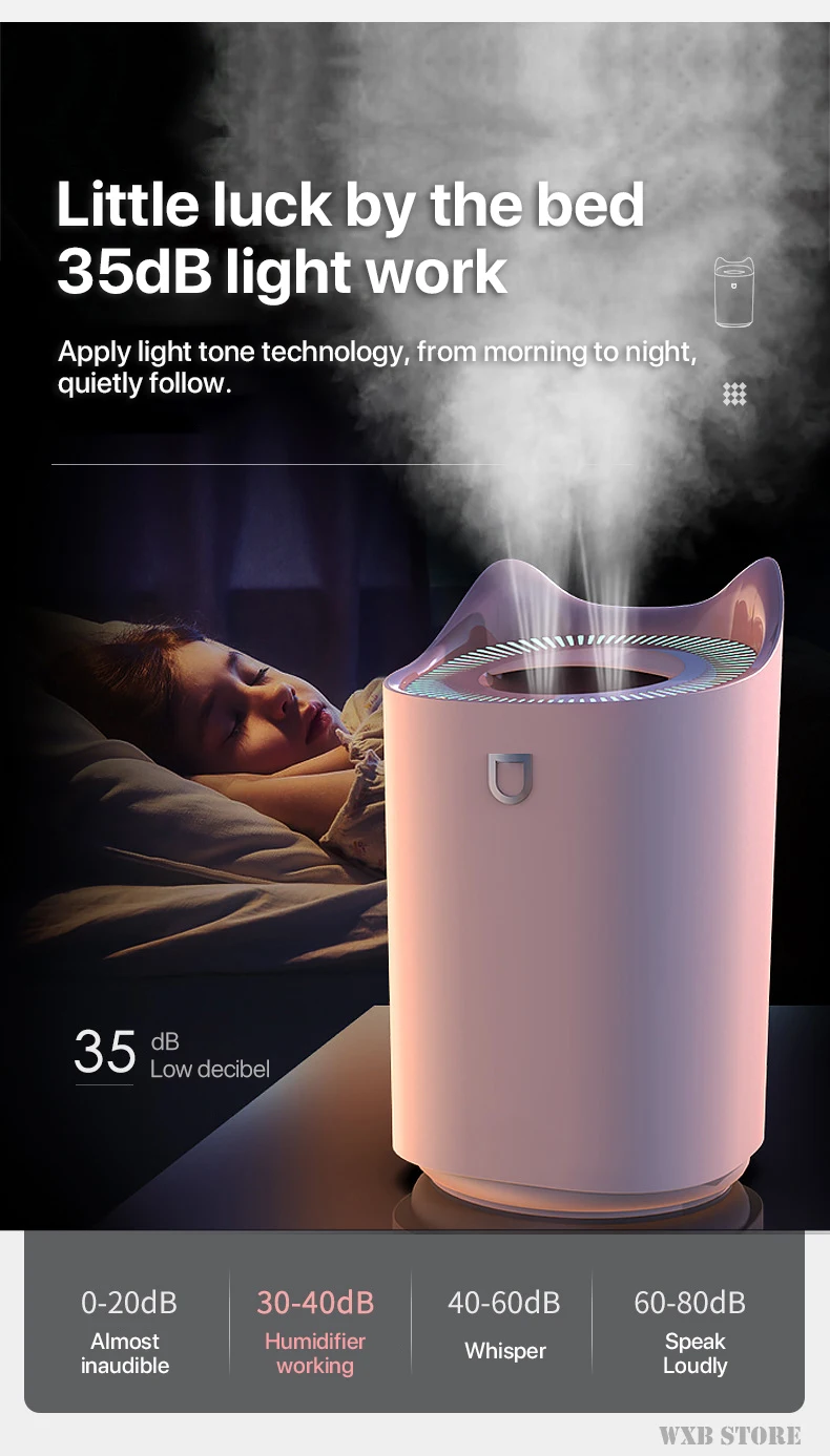 Супер тихий: диффузор использует ультразвуковую технологию и работает тихо. Это не будет разрушительным во время сна.