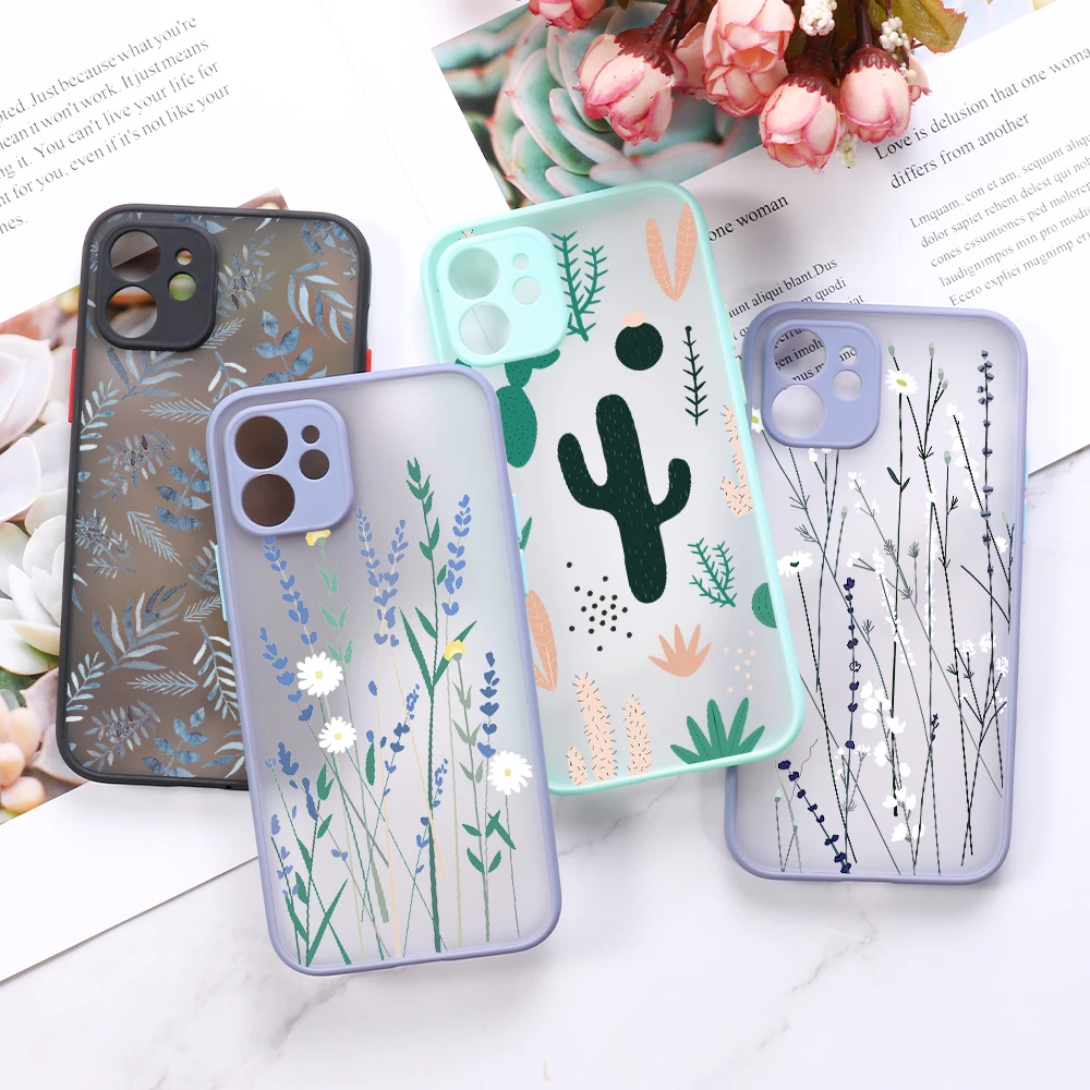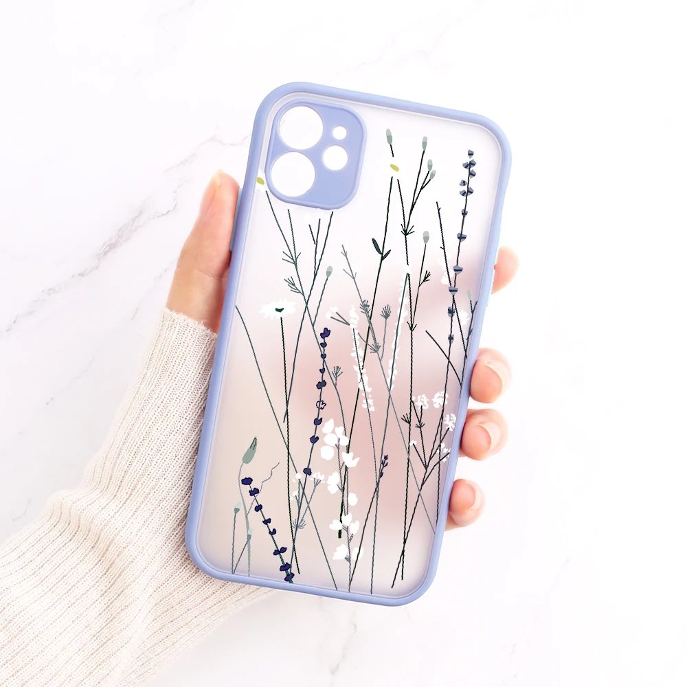 Чехол для телефона с цветочным рисунком для iPhone 11 12 13 Pro Max 12 Mini X Xr Xs Max 6s 8 7 Plus SE 2020 Матовый Жесткий чехол для ПК защитный бампер для объектива