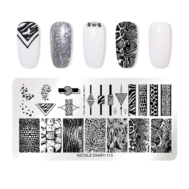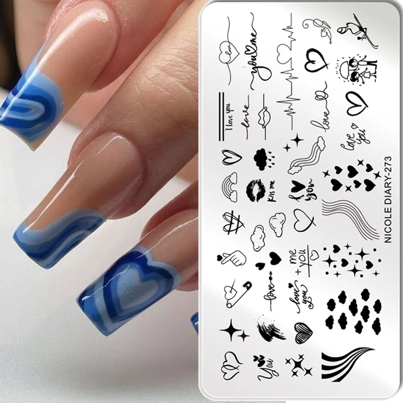 Трафареты NICOLE DIARY для стемпинга ногтей, пластины с сердечками, геометрическими линиями, цветами, листьями, форма для нейл-арта
