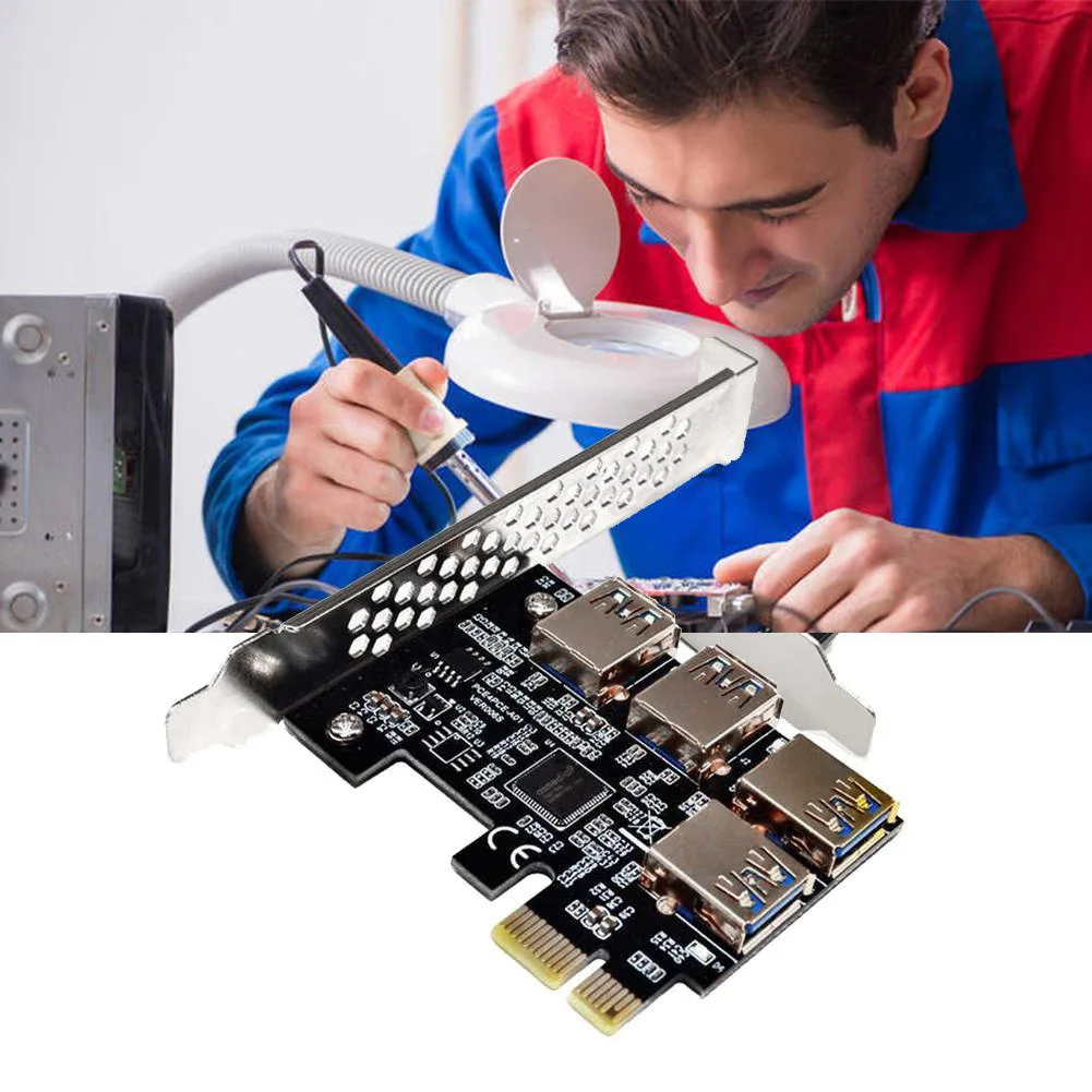 PCI-E к PCIe адаптер PCI-Express 1x к 16x Mining Riser Card 1 к 4 USB 3,0 мультипликатор для BTC Miner