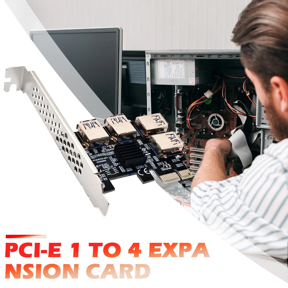 PCI-E к PCI-E адаптеру PCI-Express, от 1x до 16x1 до 4, USB 3,0, переходник для майнинга, слот для карты, концентратор, 4-портовая карта расширения для Windows