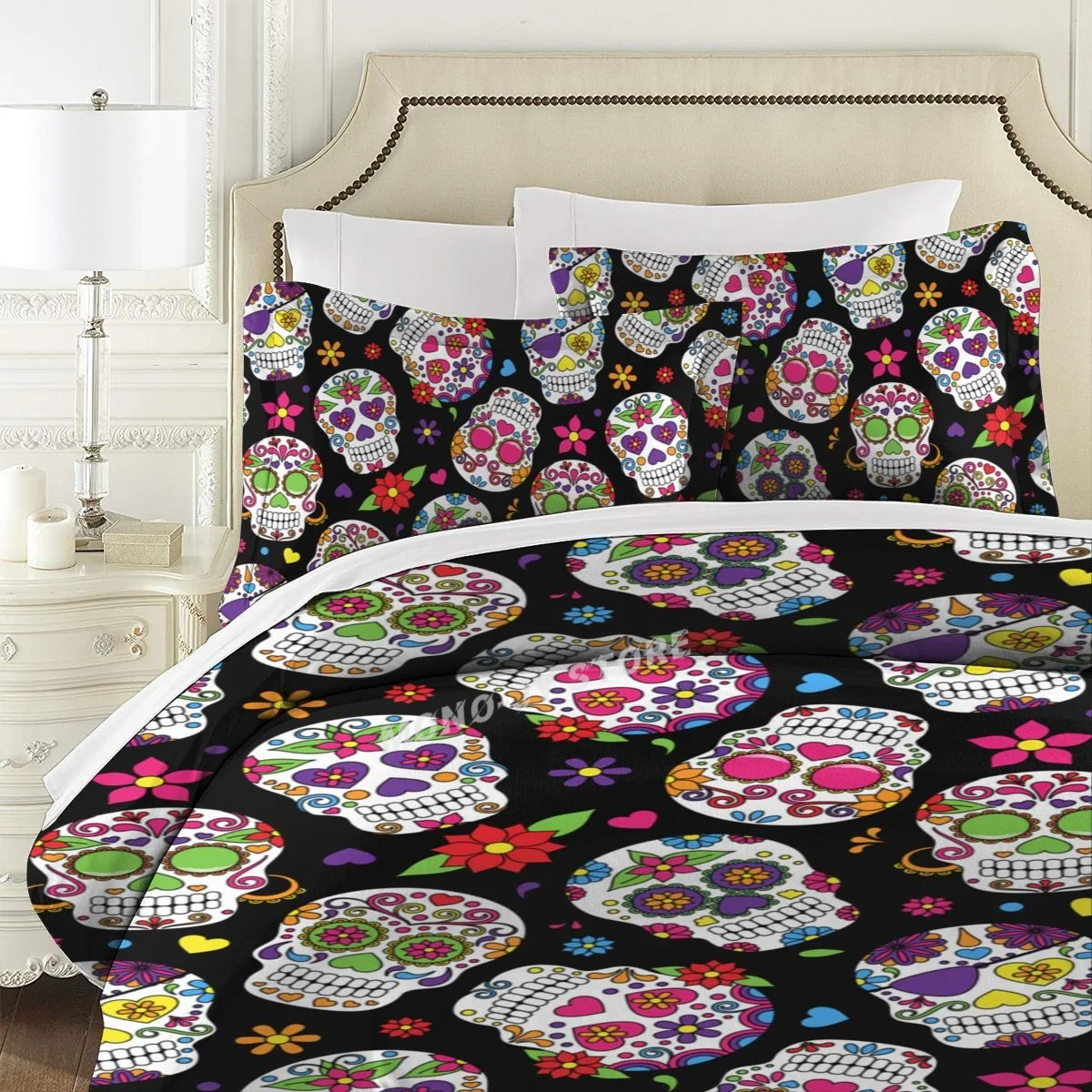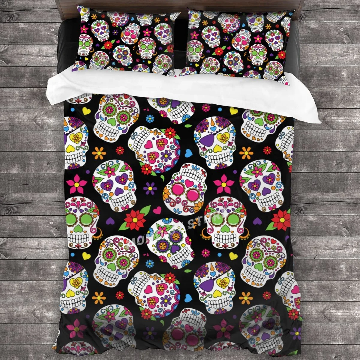 Комплект постельного белья с рисунком черепа на Хэллоуин, пододеяльник, наволочки, одеяло, Комплект постельного белья