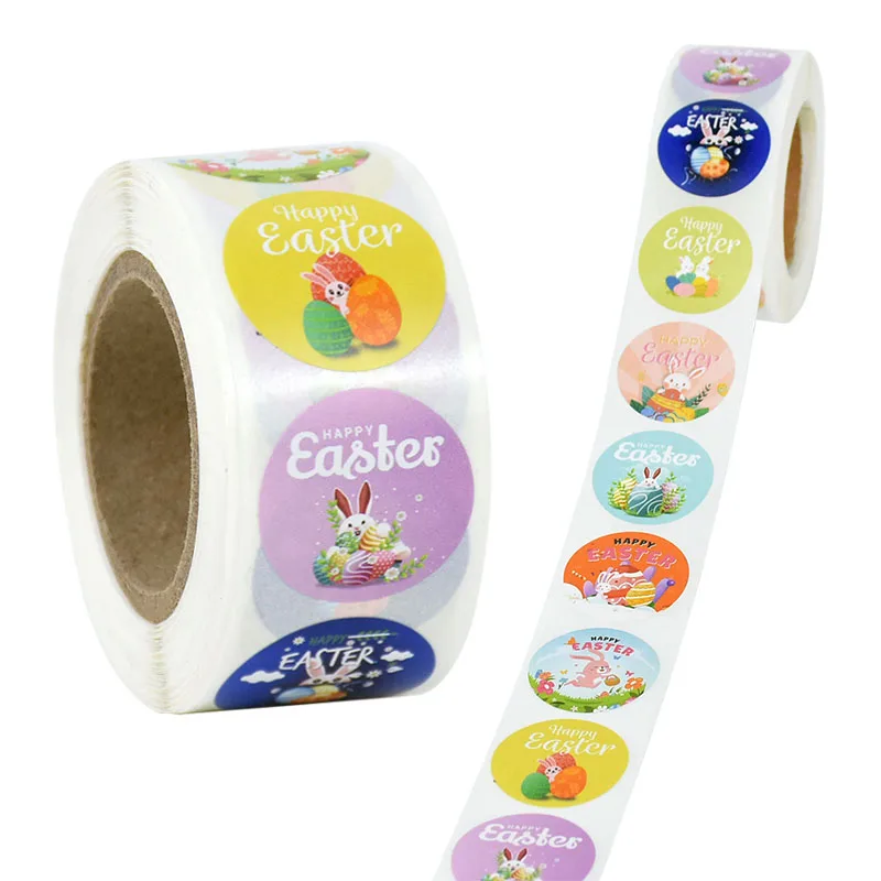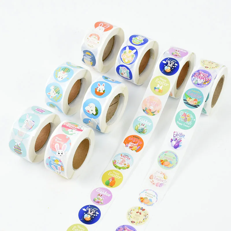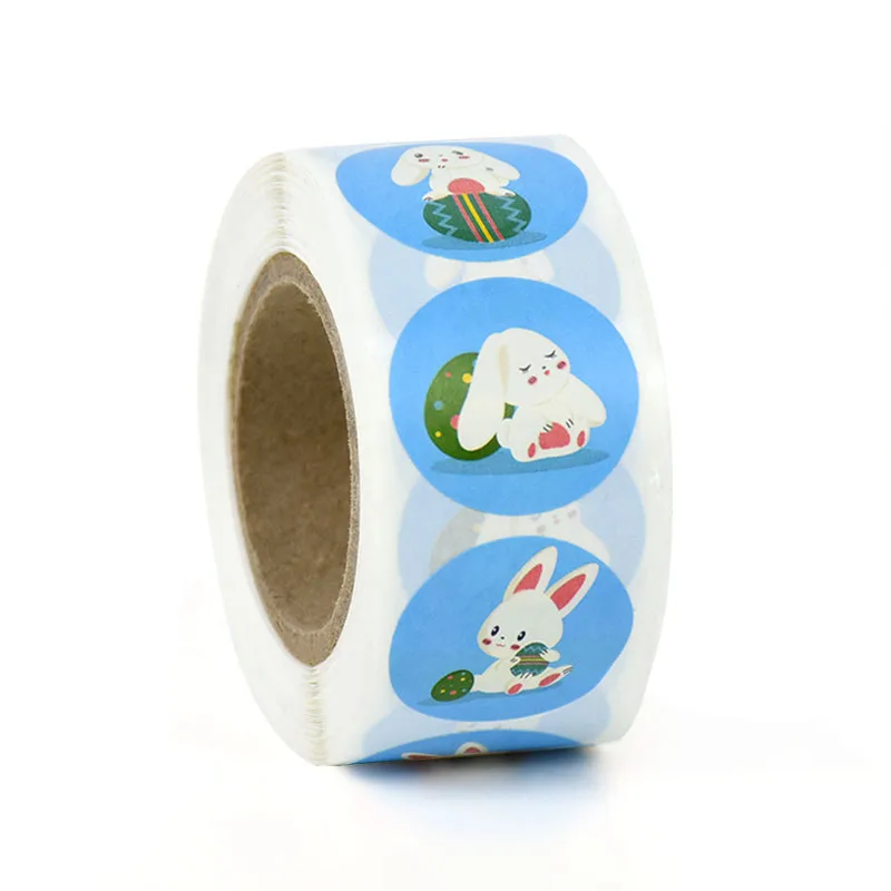 500 шт.рулон, пасхальные наклейки с принтом в виде симпатичных крол...