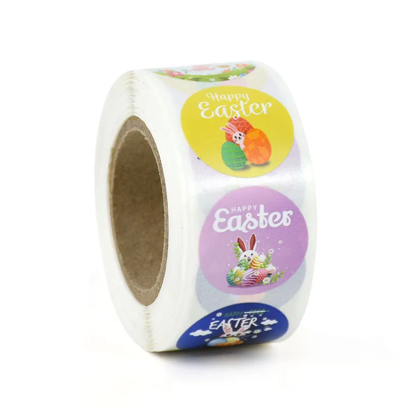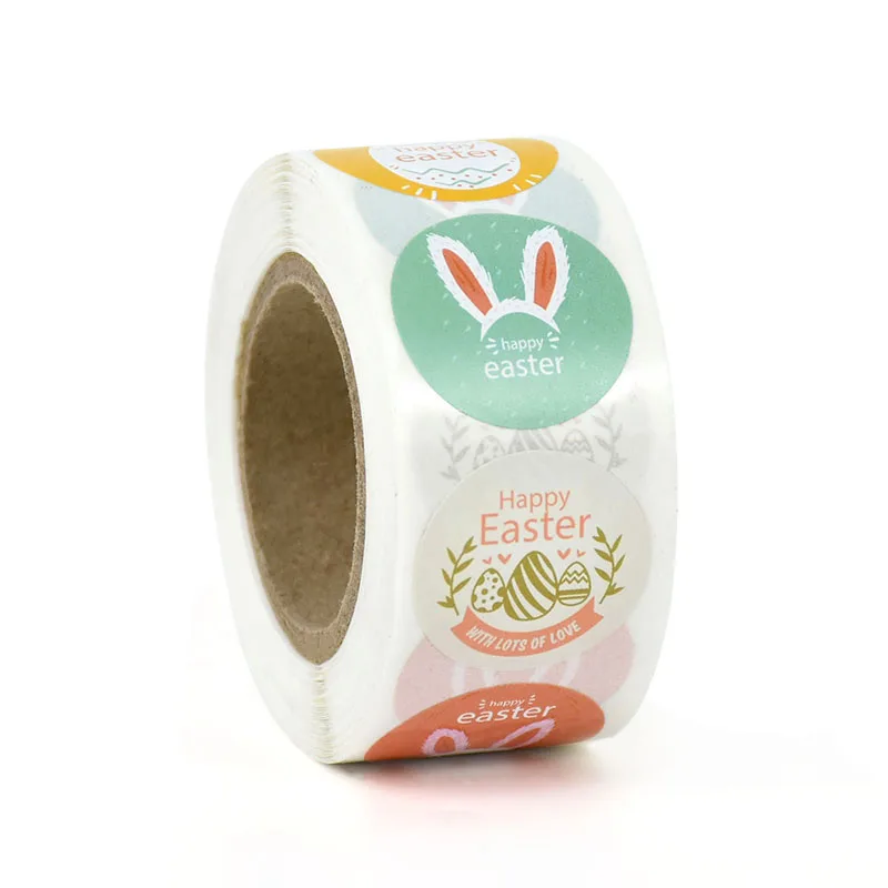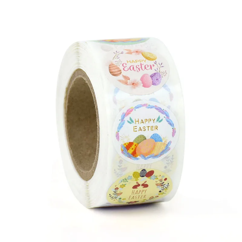 Размер: около одного диаметра 25 мм/1 дюймМатериал: бумага с наклейками.Слова с принтом: счастливая ПасхаКол-во: 1 упаковка = 50 шт/рулонов