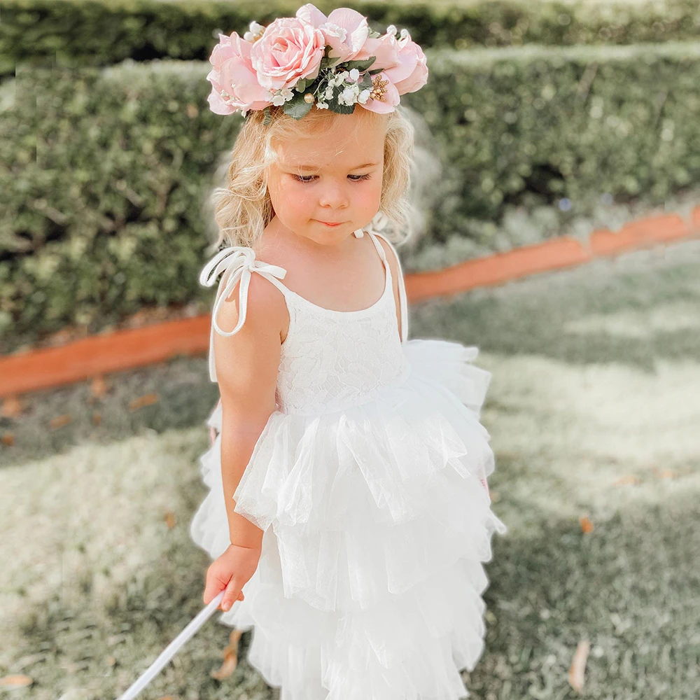 Детское вечернее платье на бретельках, детское Свадебное платье из тюля на день рождения, повседневное летнее платье для девочек, платье с цветочным принтом для девочек 3, 6, 8