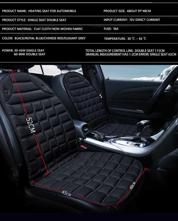 Товар: чехол для сиденья автомобиля с подогревомМатериал изделия: Композитное трикотажное волокно + Нескользящая сетка + нагревательное проволочное волокноНапряжение продукта: 12 ВМощность продукта: 35 Вт-48 ВтДлина изделия: 135 смТемпература: 30 ℃-65 ℃Применение продукта: автомобиль/дом/офисПодходящие модели: Универсальный