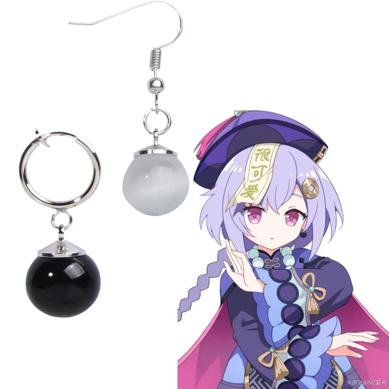 Ударные серьги Game Genshin для косплея Qiqi, черно-белые жемчужные...