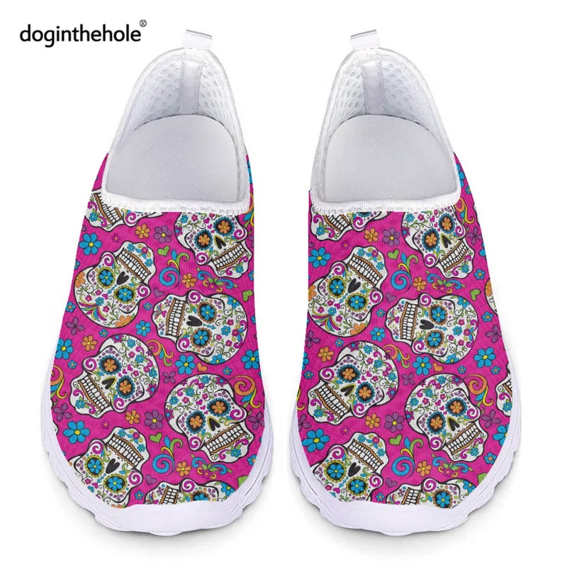 2022 Модные женские кроссовки для женщин с изображением сахарного черепа Повседневная сетчатая пляжная обувь без шнуровки Женская легкая Уличная обувь