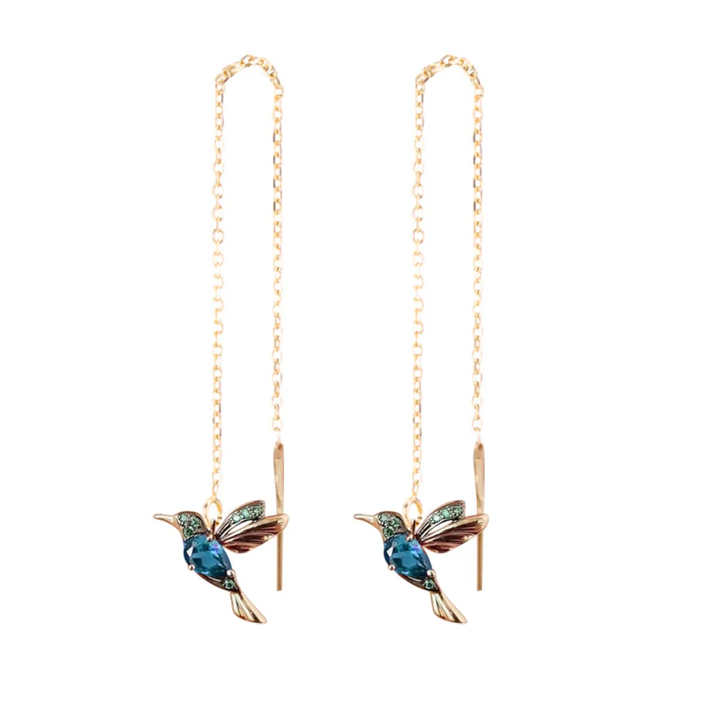 Изысканные серьги-кольца в форме колибри в форме птицы, Подвесные серьги с кристаллами, позолоченные серьги для женщин, свадебные украшения