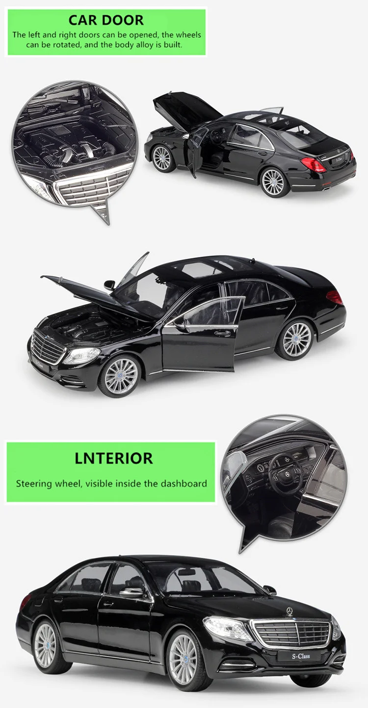 Модель спортивного автомобиля Mercedes Benz S-Class WELLY 1:24, модель автомобиля из сплава, декоративные игрушки для детей, коллекционные подарки для мальчиков