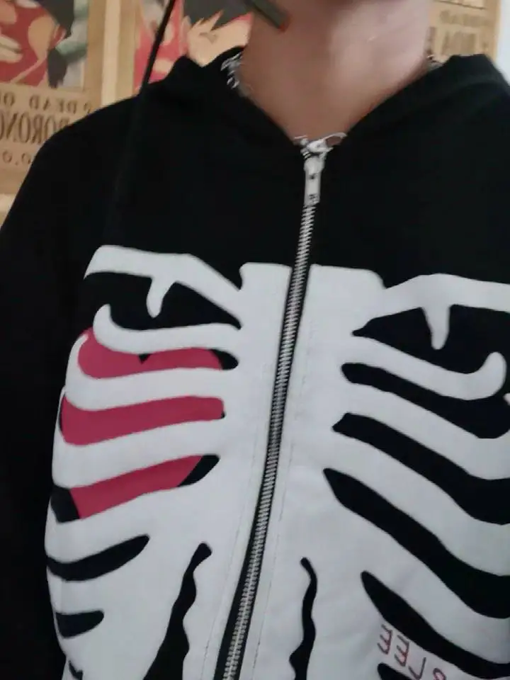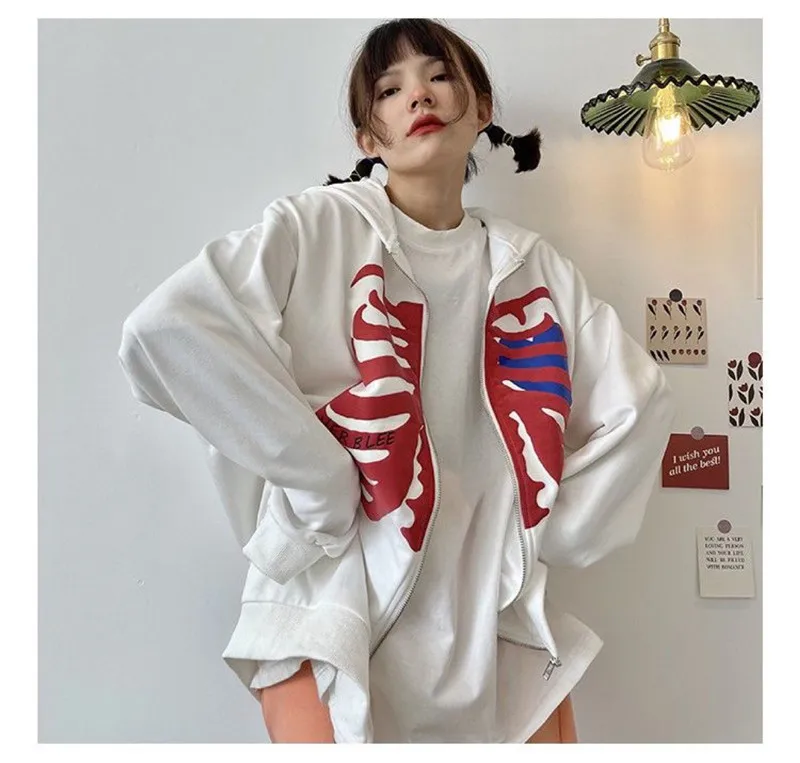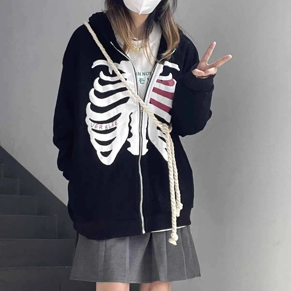 Толстовка с капюшоном и принтом черепа, американская мода, аниме, для мужчин и женщин, на молнии, Y2K, куртка с капюшоном с длинным рукавом, женская готическая свободная уличная одежда